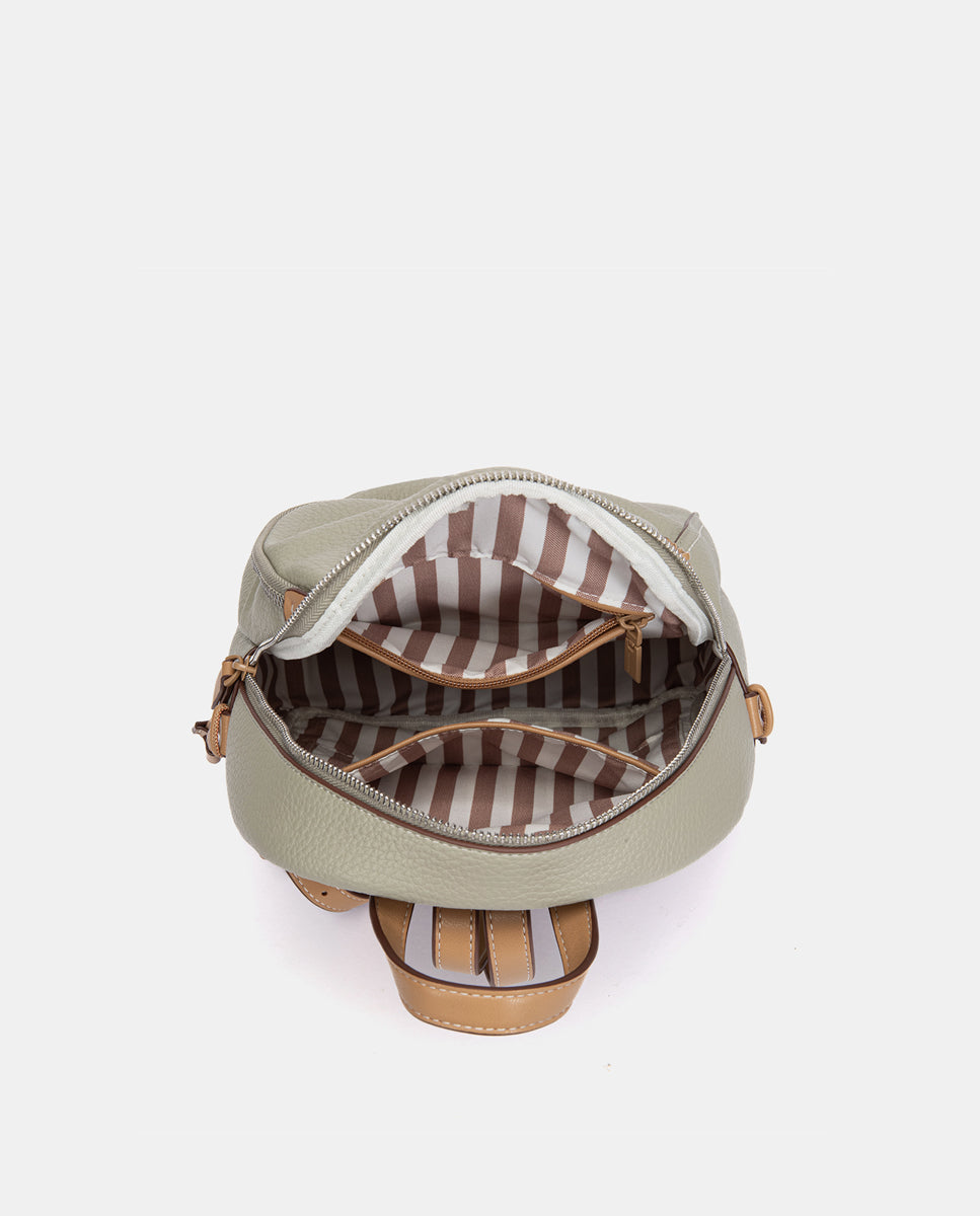 Mochila de mujer elaborada en materiales reciclados, con diseño sencillo y minimalista. Sus principales características son: