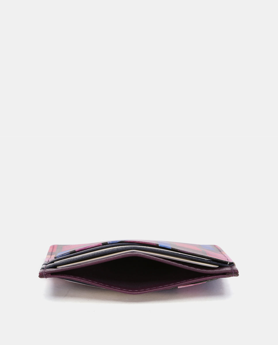 Cardholder crafted in Premium leather. A design patterned with a striking geometric print characteristic of the brand. Dyed in seasonal colors, it's ideal for always keeping all your cards organized. Its main characteristics are: