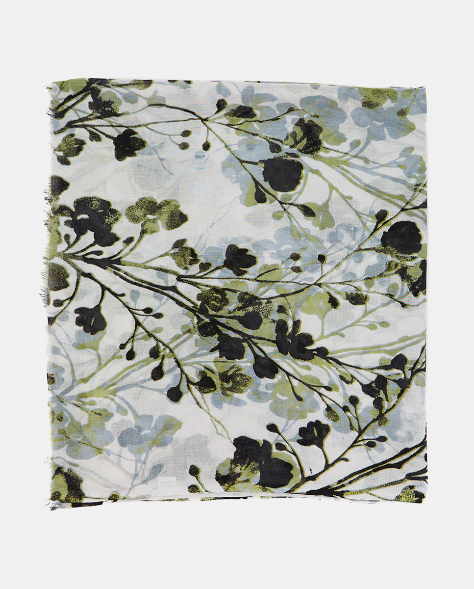 Pañuelo de viscosa con estampado floral verde