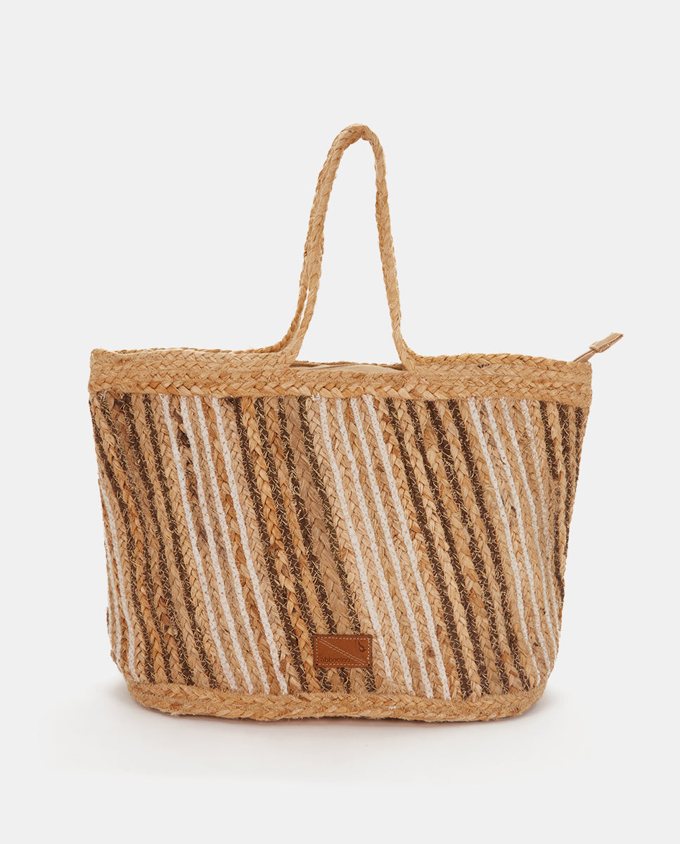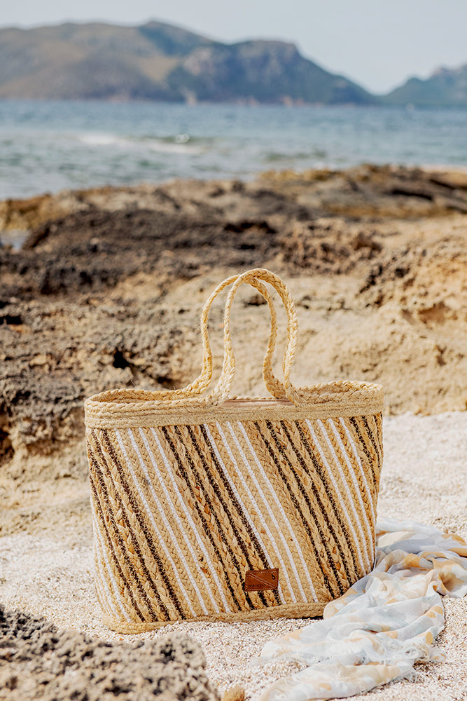 Women's basket bag made of raffia. This striped bag is perfect for your beach days, casual outings, or to add a natural touch to your daily looks. Its main features are: