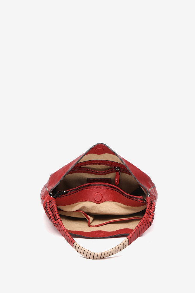 Large women's shoulder bag made of premium leather. A design with a classic and minimalist cut featuring small braided details on its handle. An authentic timeless, elegant, and practical wardrobe staple. Its main features include: