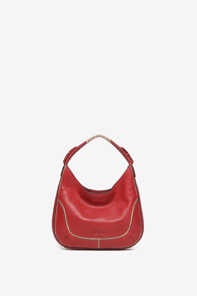 Small women's shoulder bag made of premium leather. A design with a classic and minimalist cut featuring small braided details on its handle. An authentic timeless, elegant, and practical wardrobe staple. Its main features include: