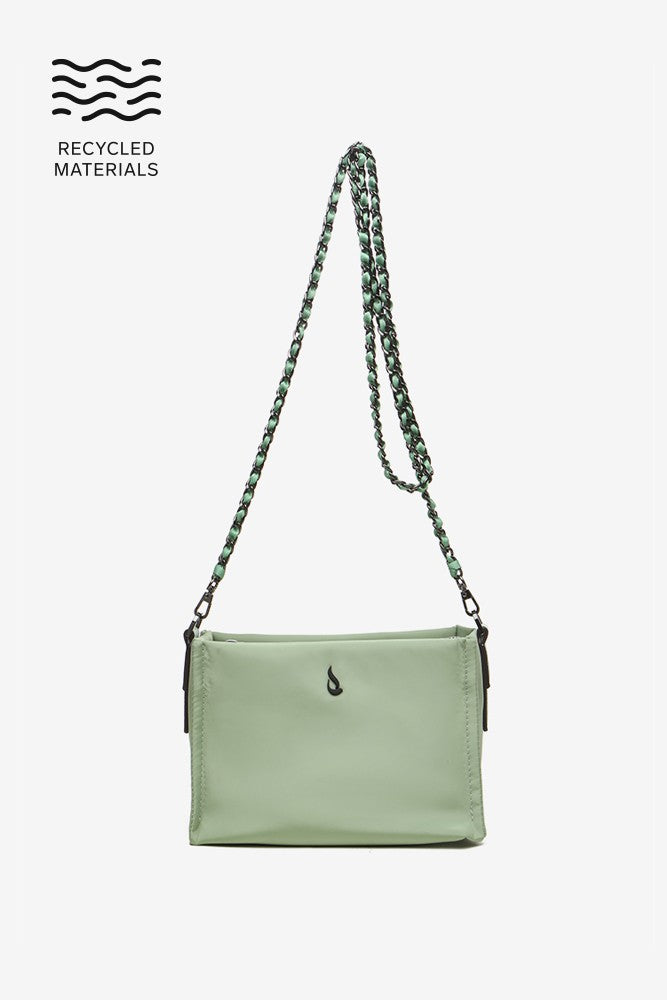 Women's satin crossbody bag in recycled materials, green