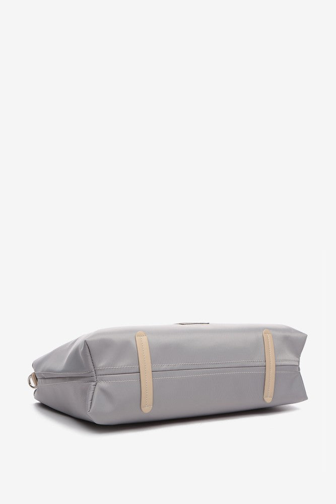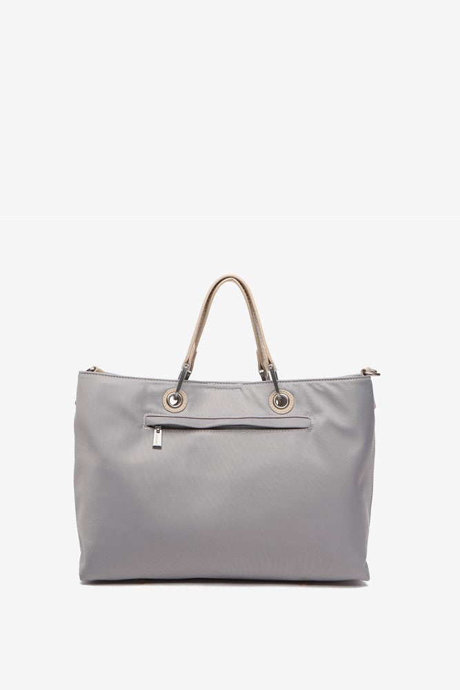 Women's shopper bag crafted with recycled materials and featuring a subtle satin finish inherent to its fabric. A casual-style model ideal for daily use, offering ample interior capacity, perfect for office days. Its main features include:
