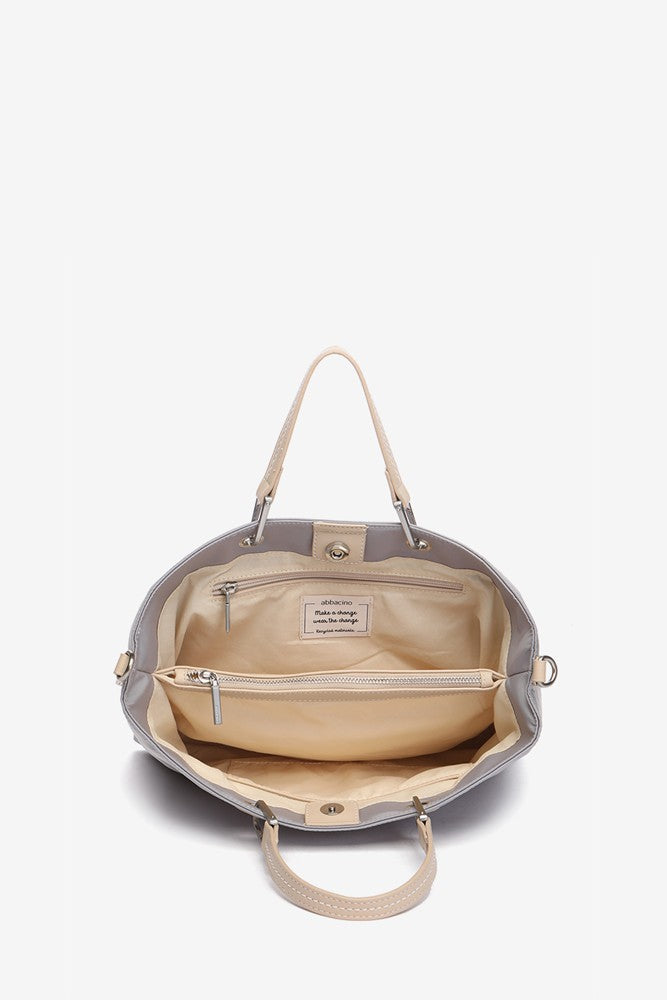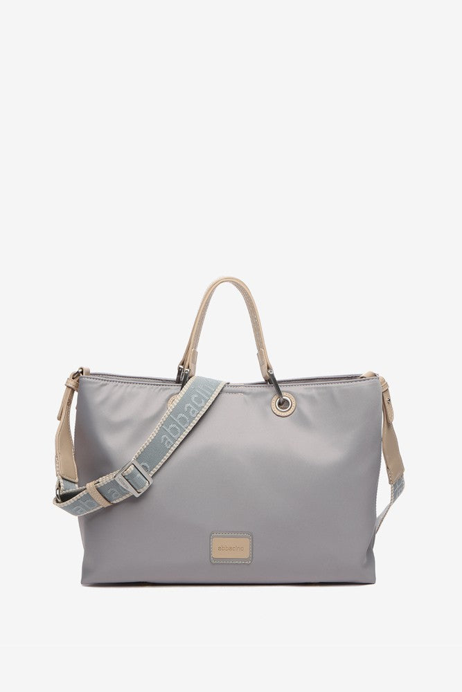 • Combines a double hand handle with an adjustable and detachable crossbody strap, featuring the Abbacino logo.