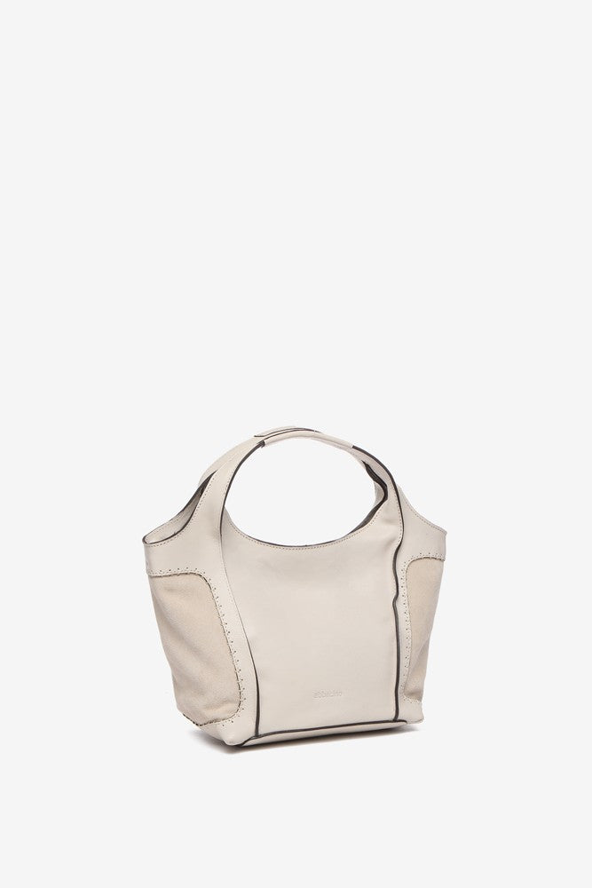 Small women's shopper bag made of premium leather. A novel design in our catalog that stands out for the combination of leather and suede. Its ultra-fluid and soft leather is dyed in easily combinable colors, with a timeless style. Its main features include: