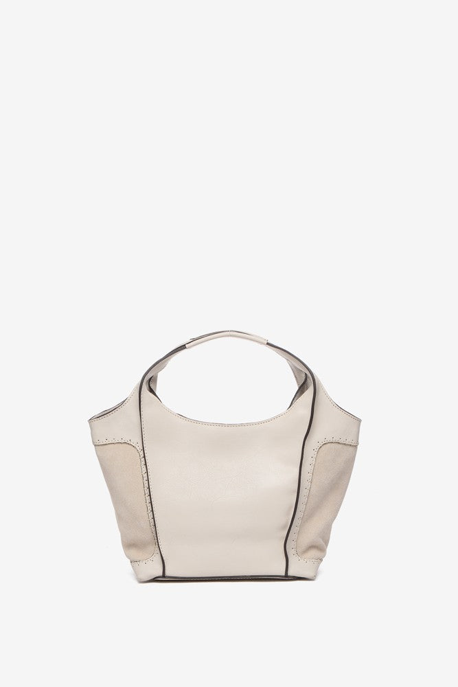 Small beige leather shopper bag
