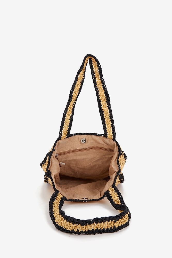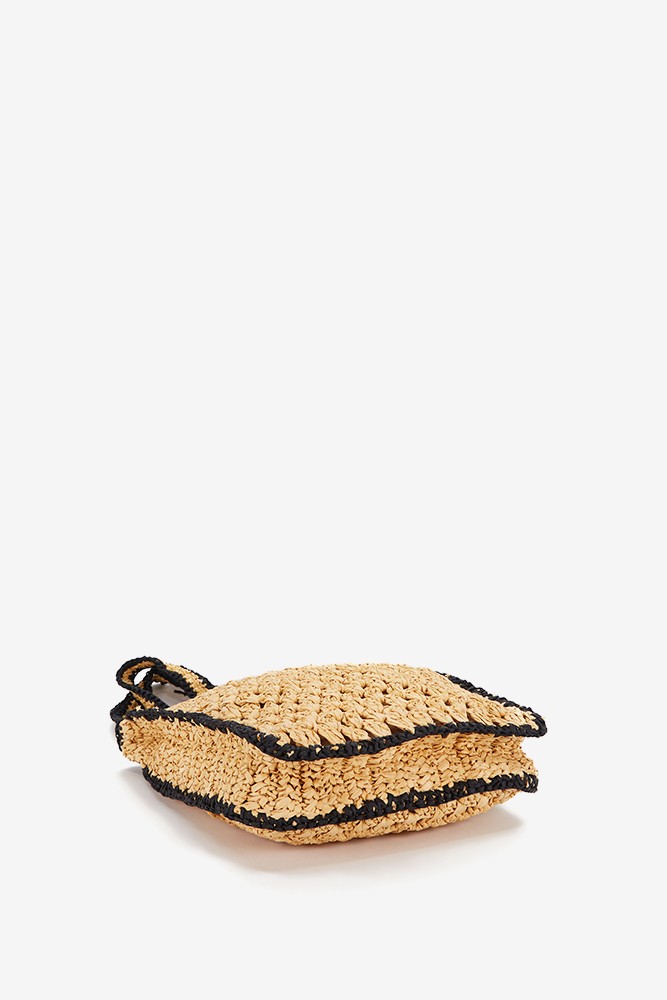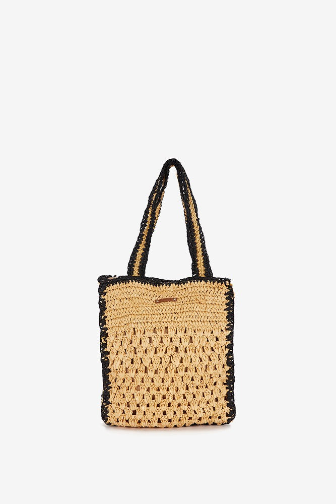 Women's shoulder bag crafted from braided natural fibers with contrasting black details. A design perfect for pairing with your summer outfits. Its key features are: