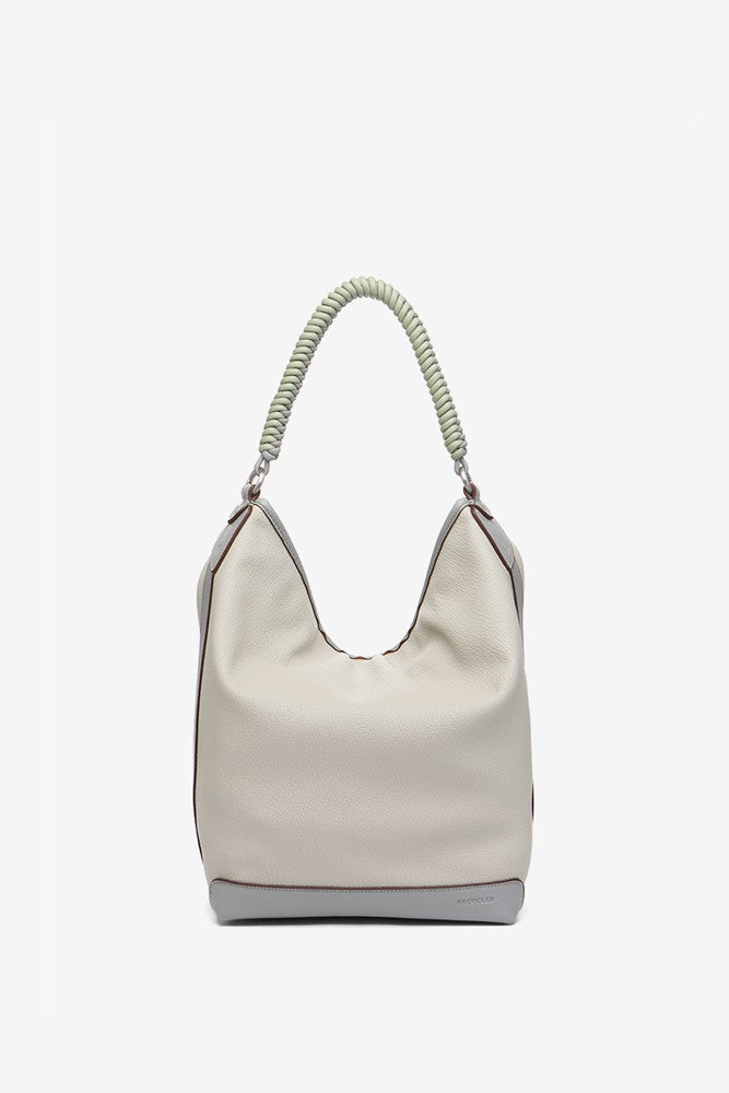 Women's shoulder bag crafted from recycled materials. A very casual and simple model that combines two color tones. Spacious, light, and fluid, it will become a staple for spring and summer days. Its main features include: