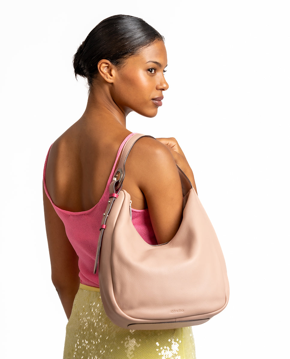 Hobo-style shoulder bag in premium leather. A basic design dyed in fresh and summery colors, perfect for daily use. Its main features are: