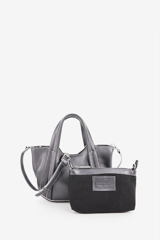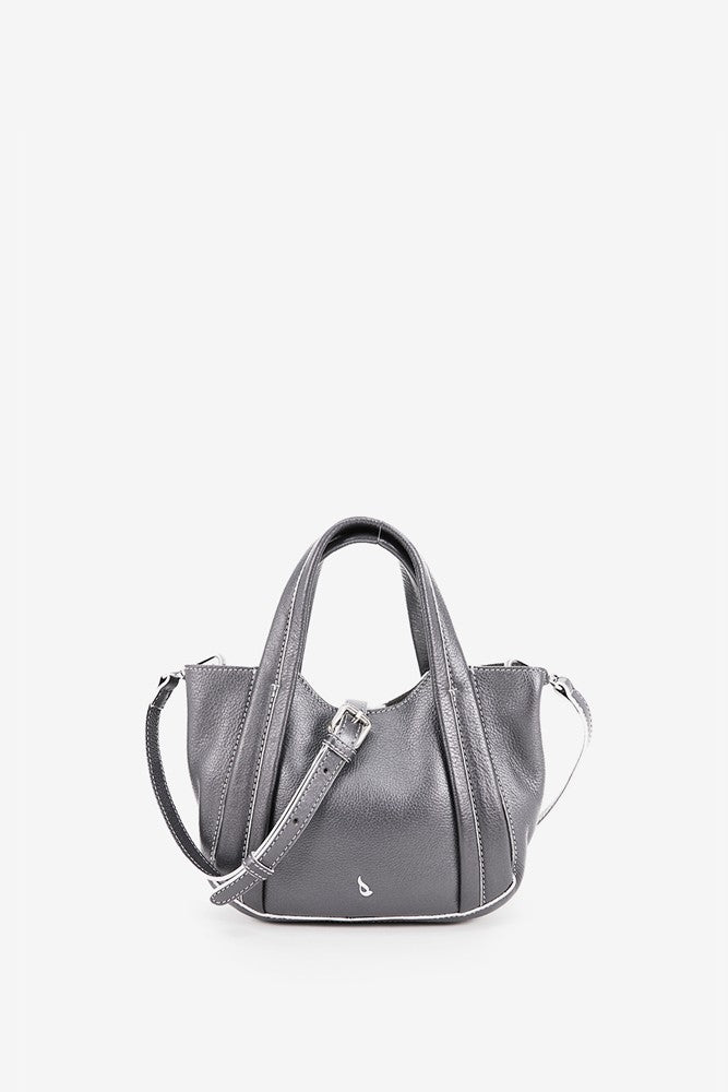 Small leather handbag in silver