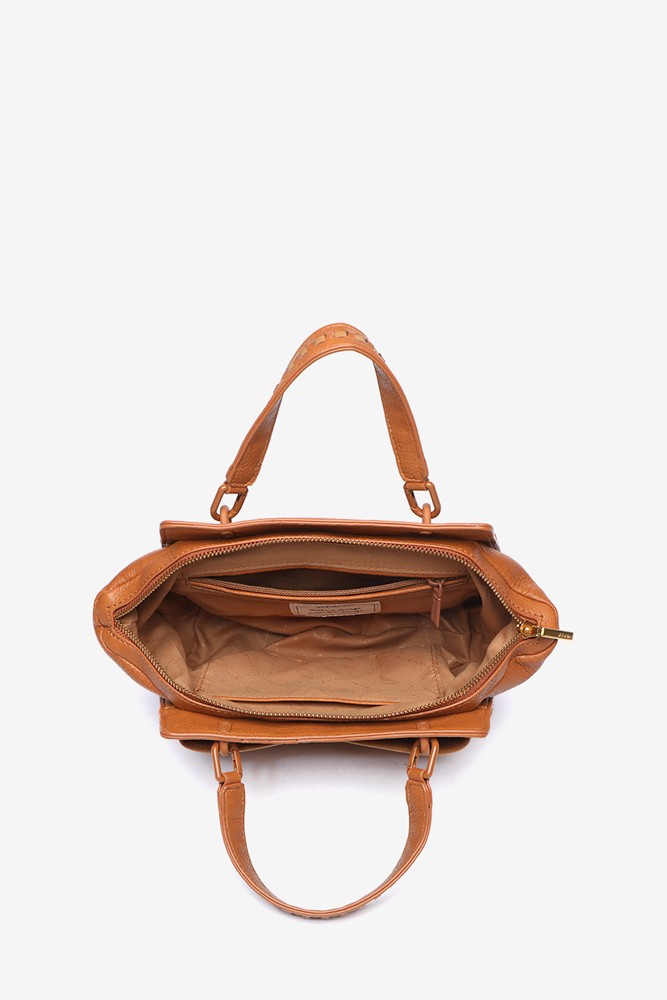 Small handbag in cognac recycled materials