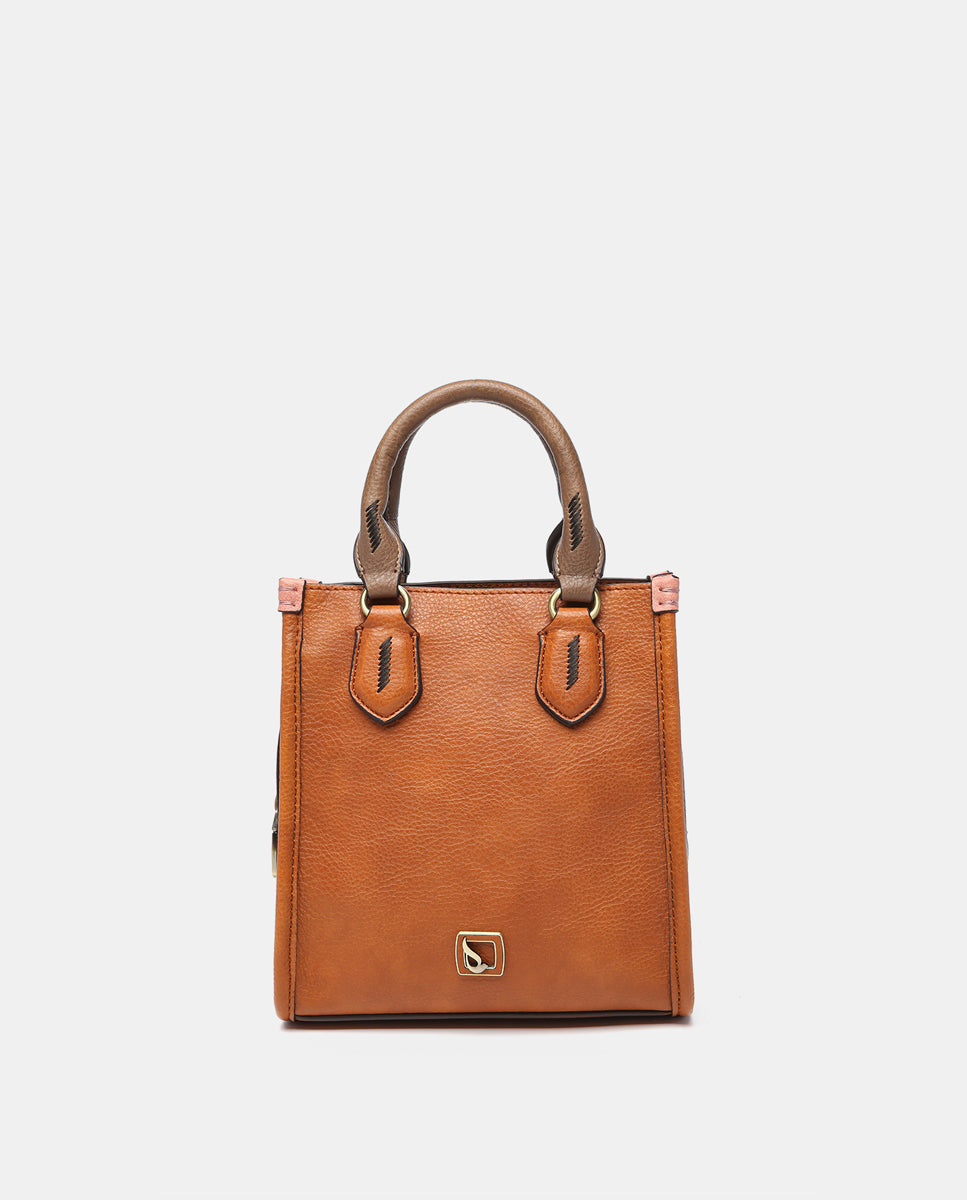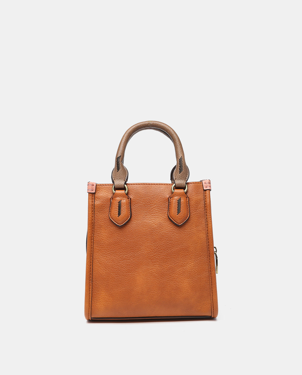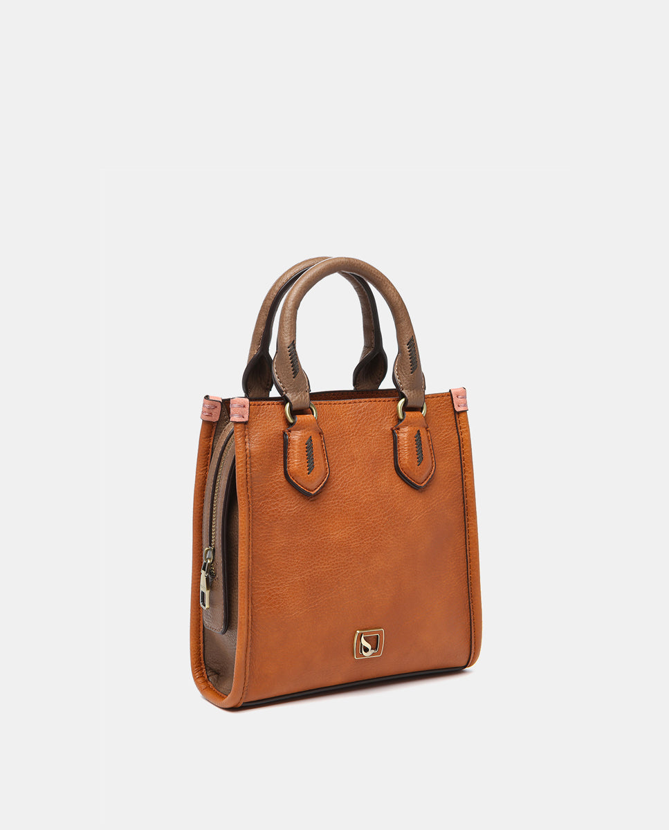 • It combines its double handle with a shoulder strap, which can be adjusted and is removable, and its handles are dyed in a different colour to the main colour of the bag.