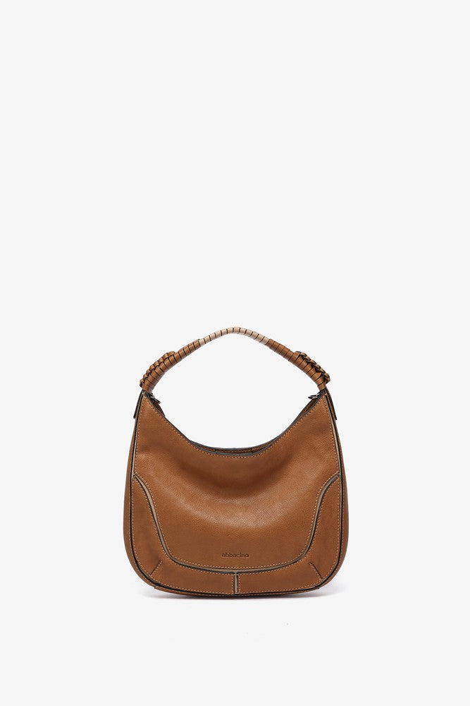 Small women's shoulder bag made of premium leather. A design with a classic and minimalist cut featuring small braided details on its handle. An authentic timeless, elegant, and practical wardrobe staple. Its main features include: