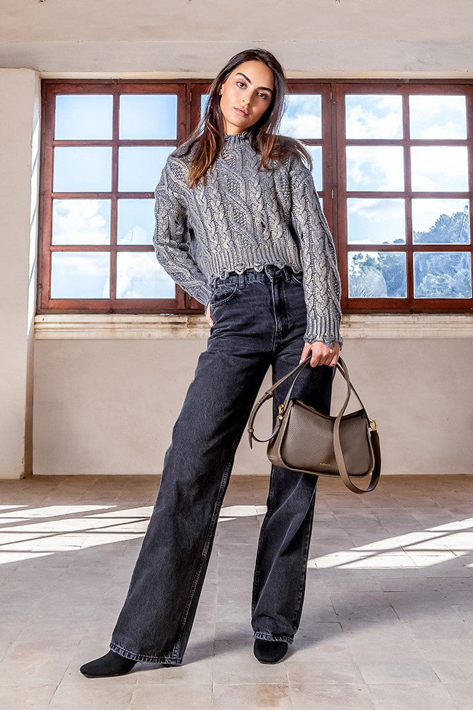 Small women's shoulder bag made from recycled materials. A classic-cut design that will become a staple piece in your wardrobe thanks to its timeless colors and elegant style. Its main features are: