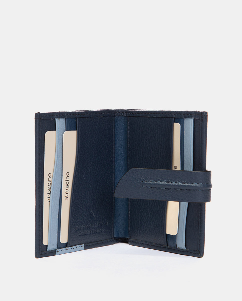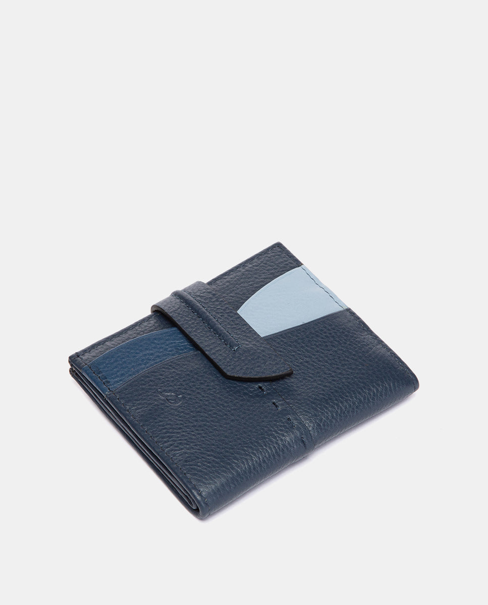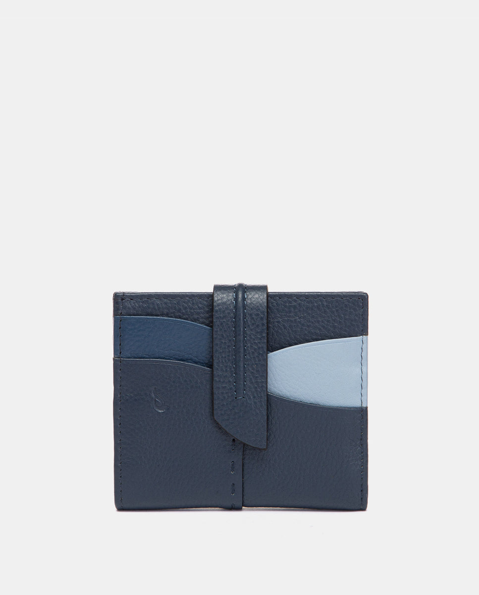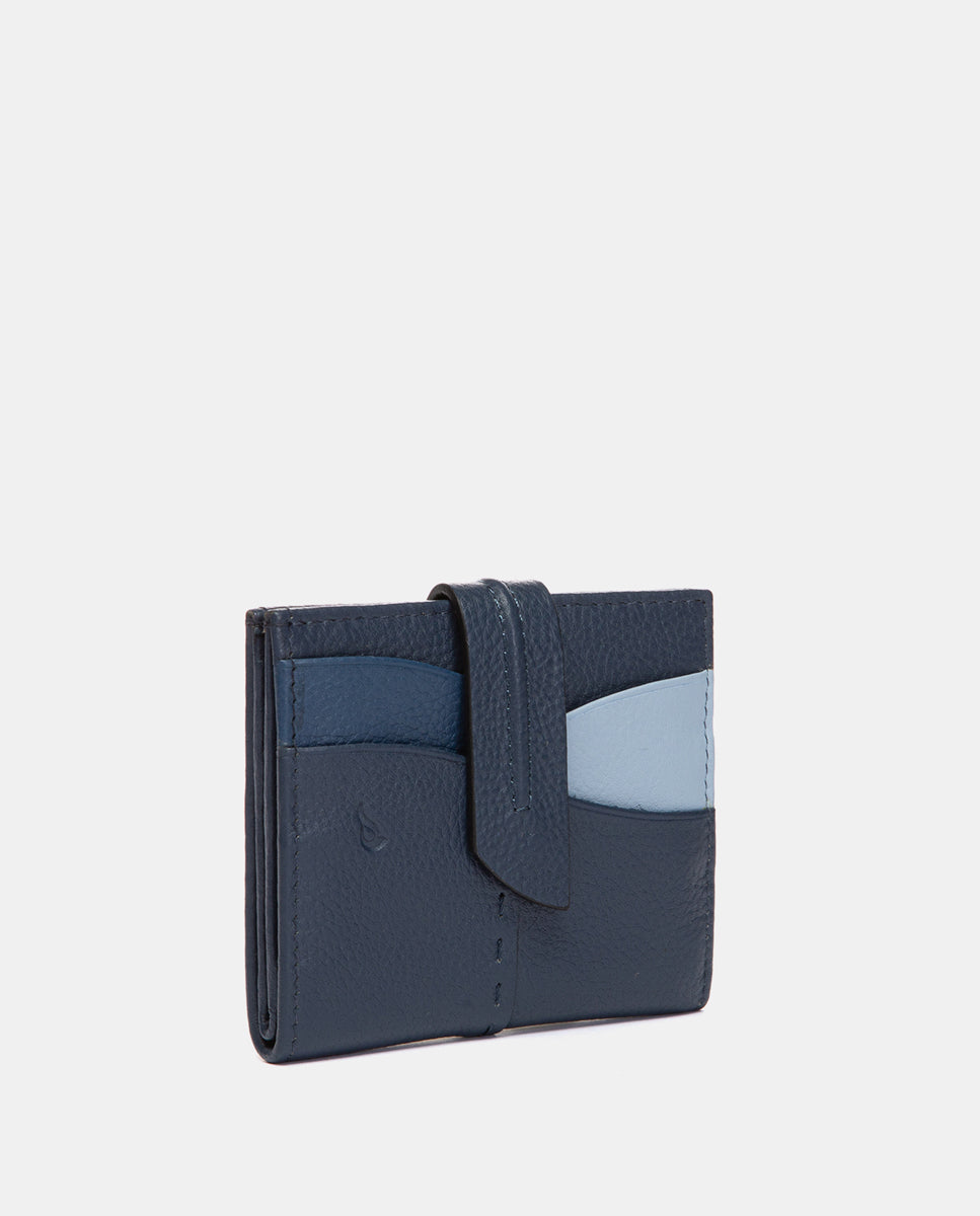 Tarjetero en piel azul