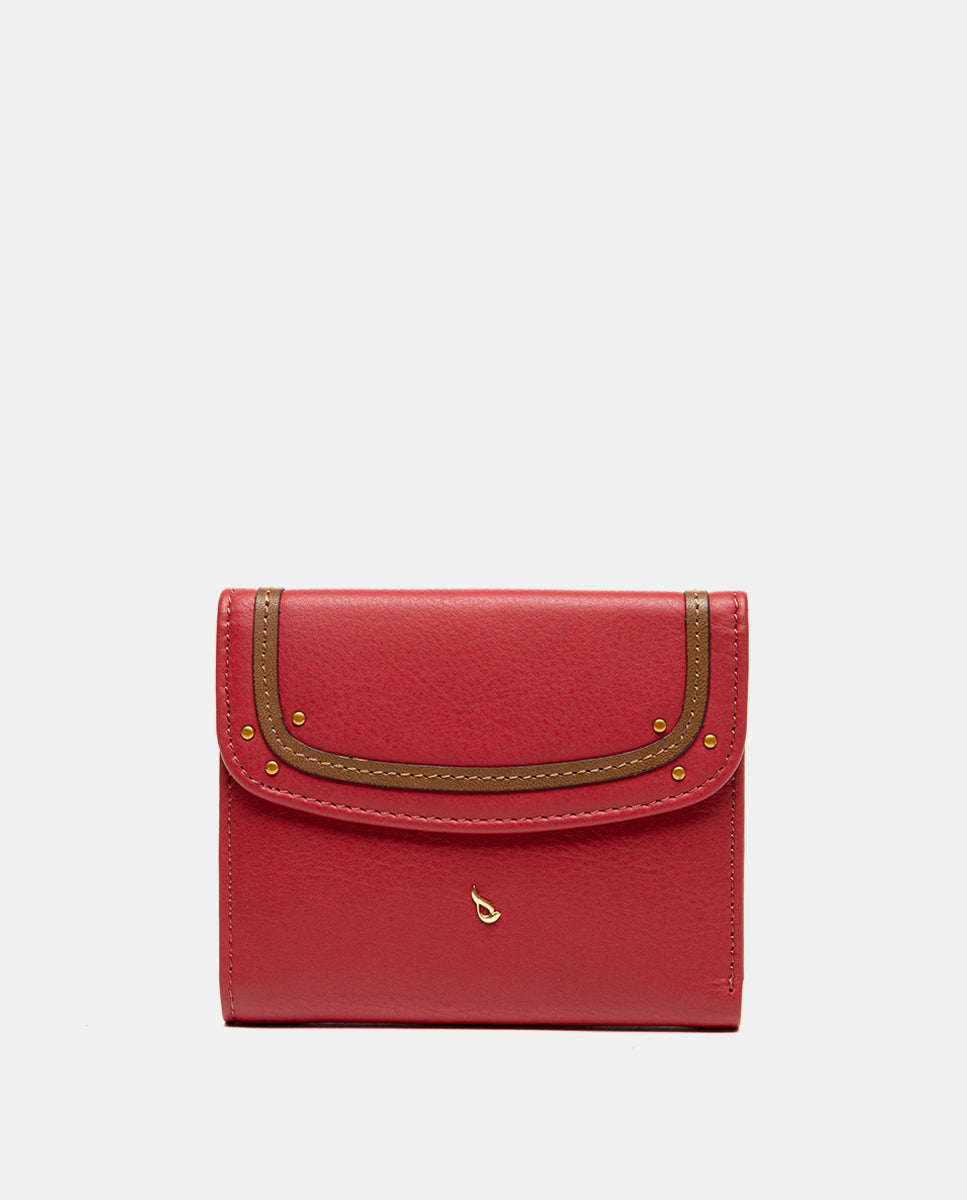 Women's card holder made of premium leather, featuring a flap closure and a contrasting colored stripe. Compact and practical, it's ideal for keeping your essentials organized. Its main features include: