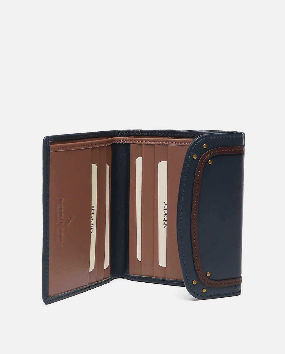 Women's card holder made of premium leather, featuring a flap closure and a contrasting colored stripe. Compact and practical, it's ideal for keeping your essentials organized. Its main features include:
