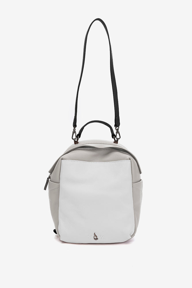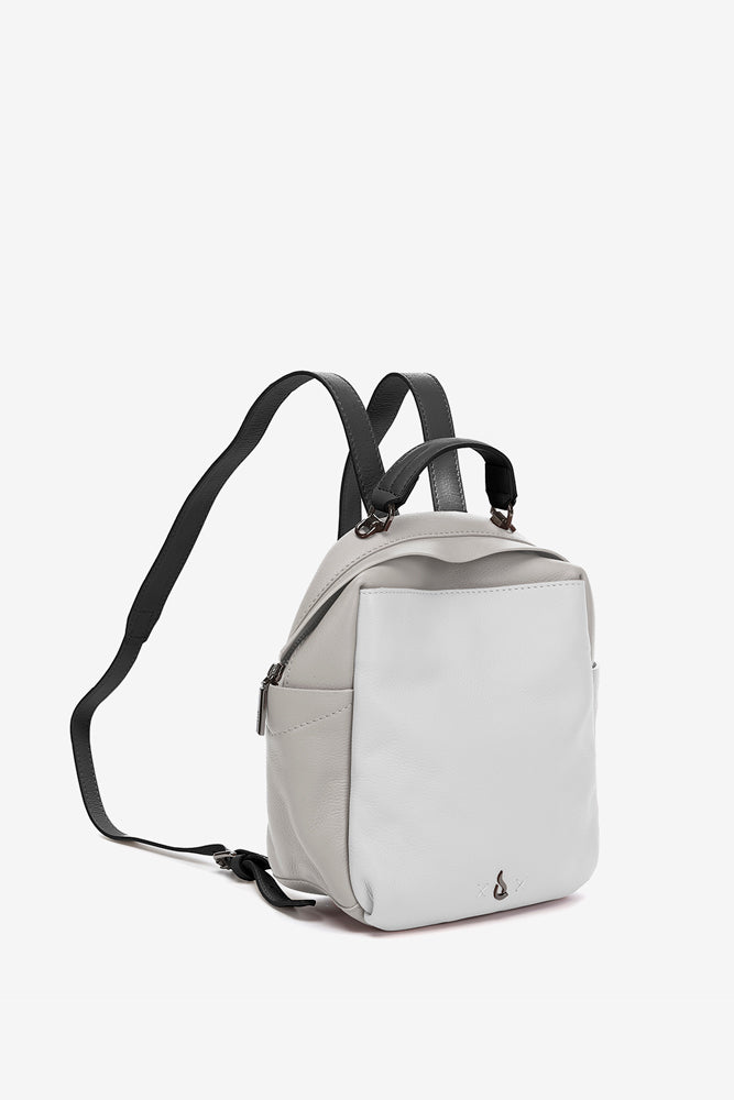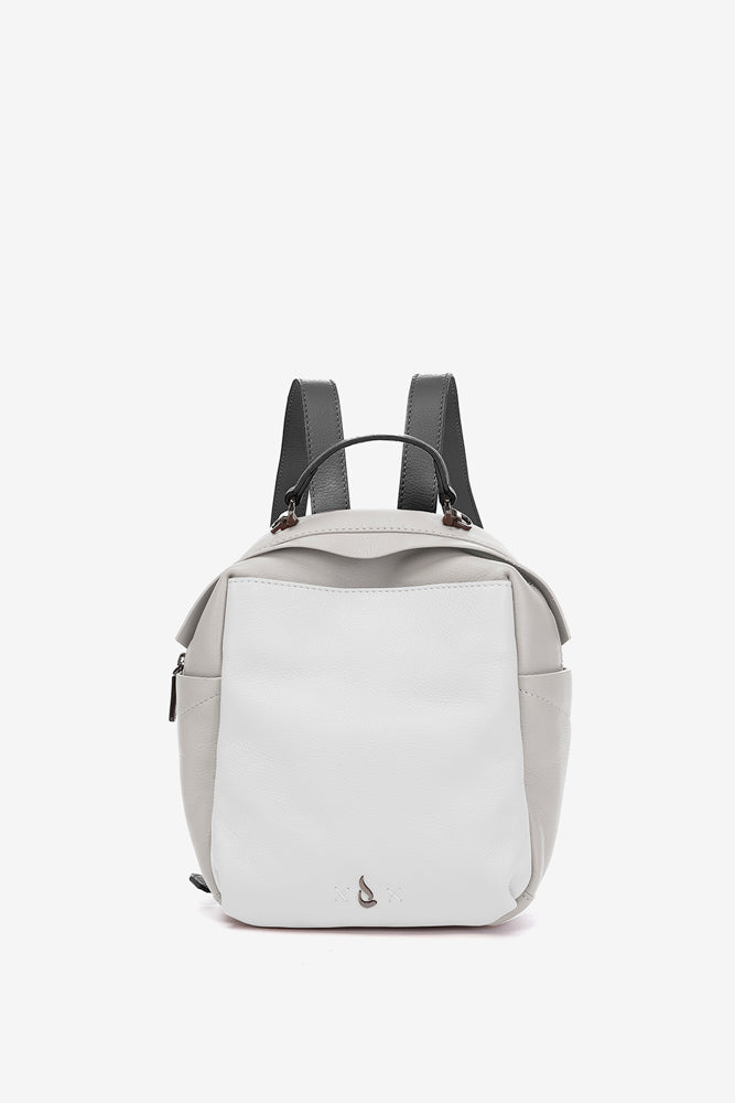 Multifunctional women's backpack in bicolor premium leather. A basic and practical design for everyday use. Its main features are: