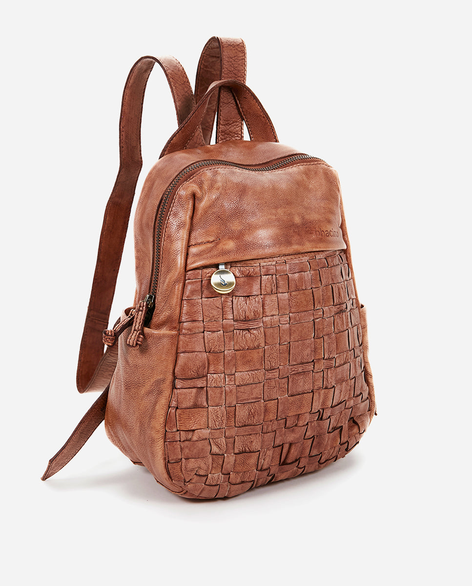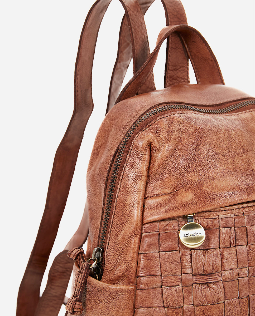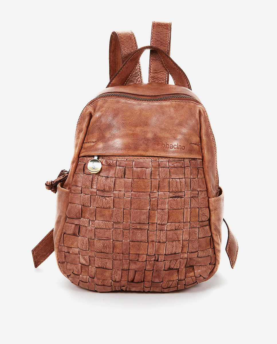 Women's backpack in cognac braided leather