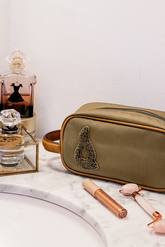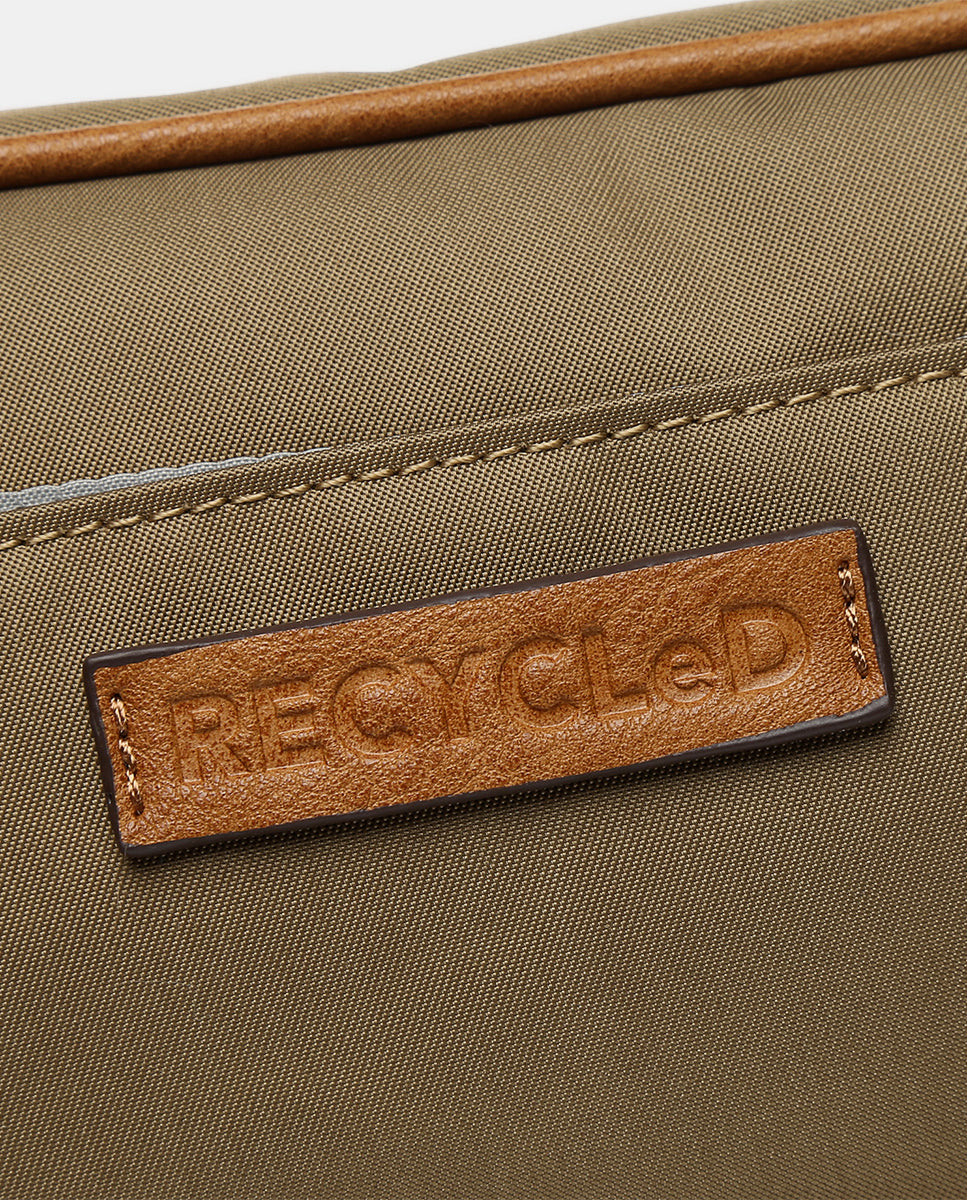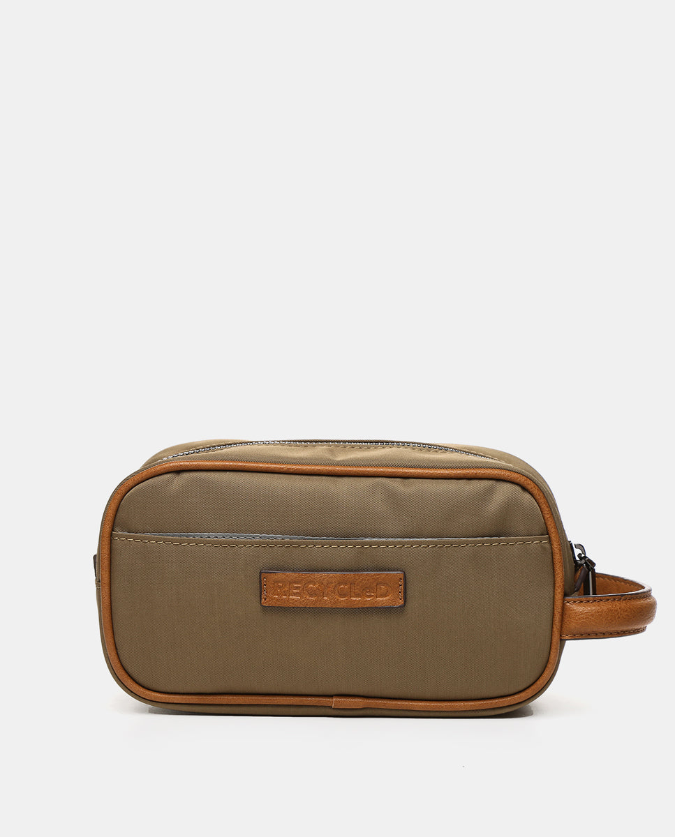 Women's cosmetic bag with hand strap, made of recycled materials and using processes that advocate sustainability. An essential accessory to accompany you on your weekend getaways or business trips, take it with you wherever you go, whether in your suitcase or in your handbag.