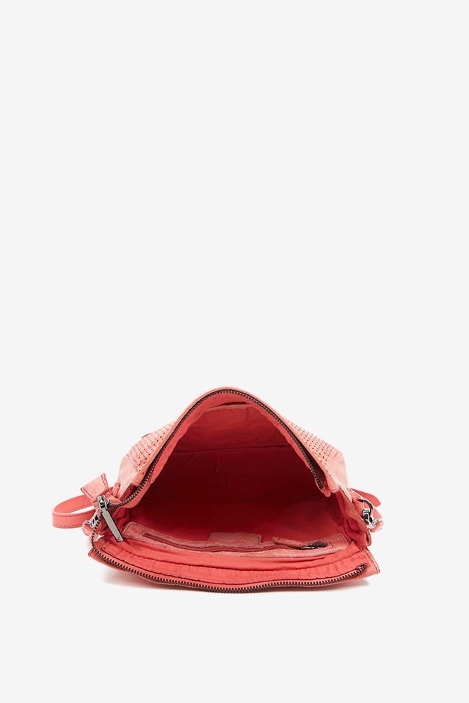 Women's crossbody bag in coral perforated leather