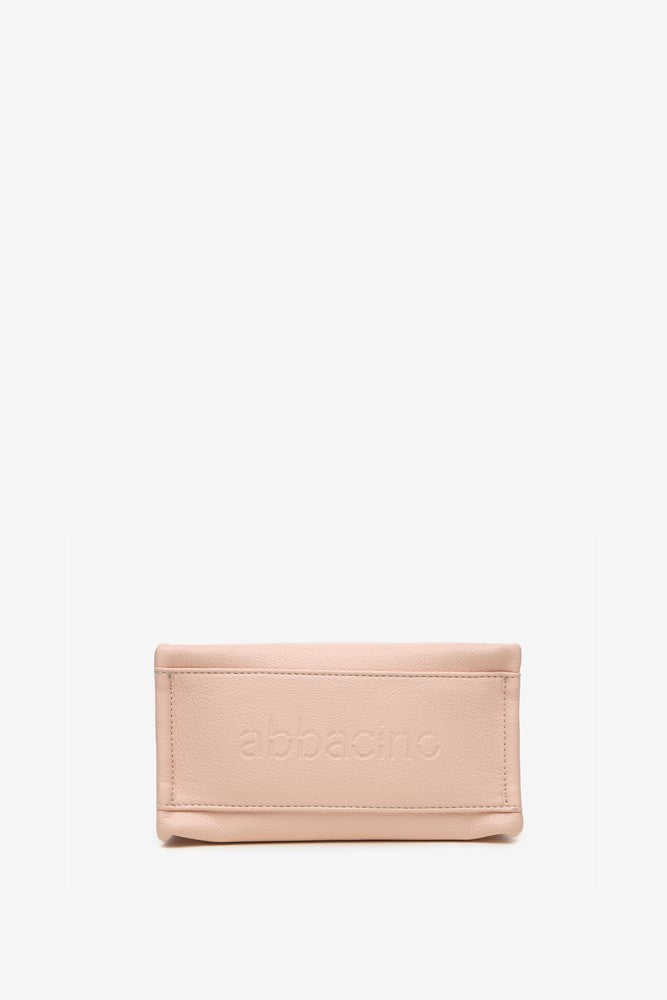 • Its shoulder strap, personalised with the Abbacino logo, is adjustable and removable.