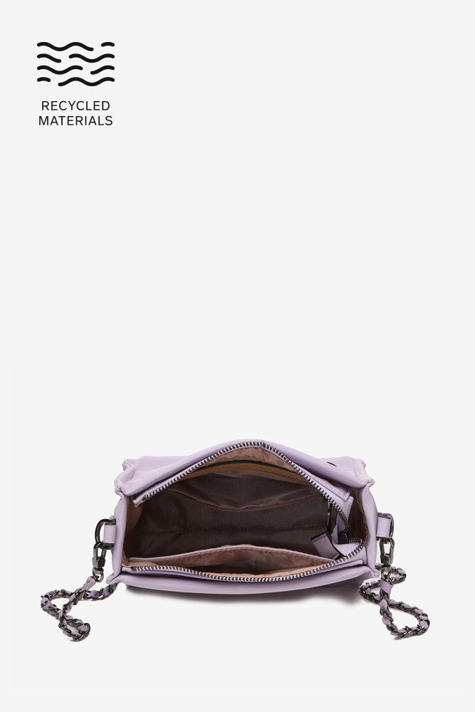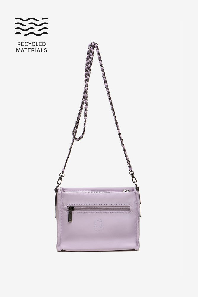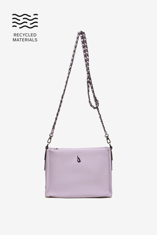 Women's crossbody bag made from recycled materials, with an original satin-effect fabric in vibrant colours. An ideal design to add a chic touch to all your outfits, especially party looks.