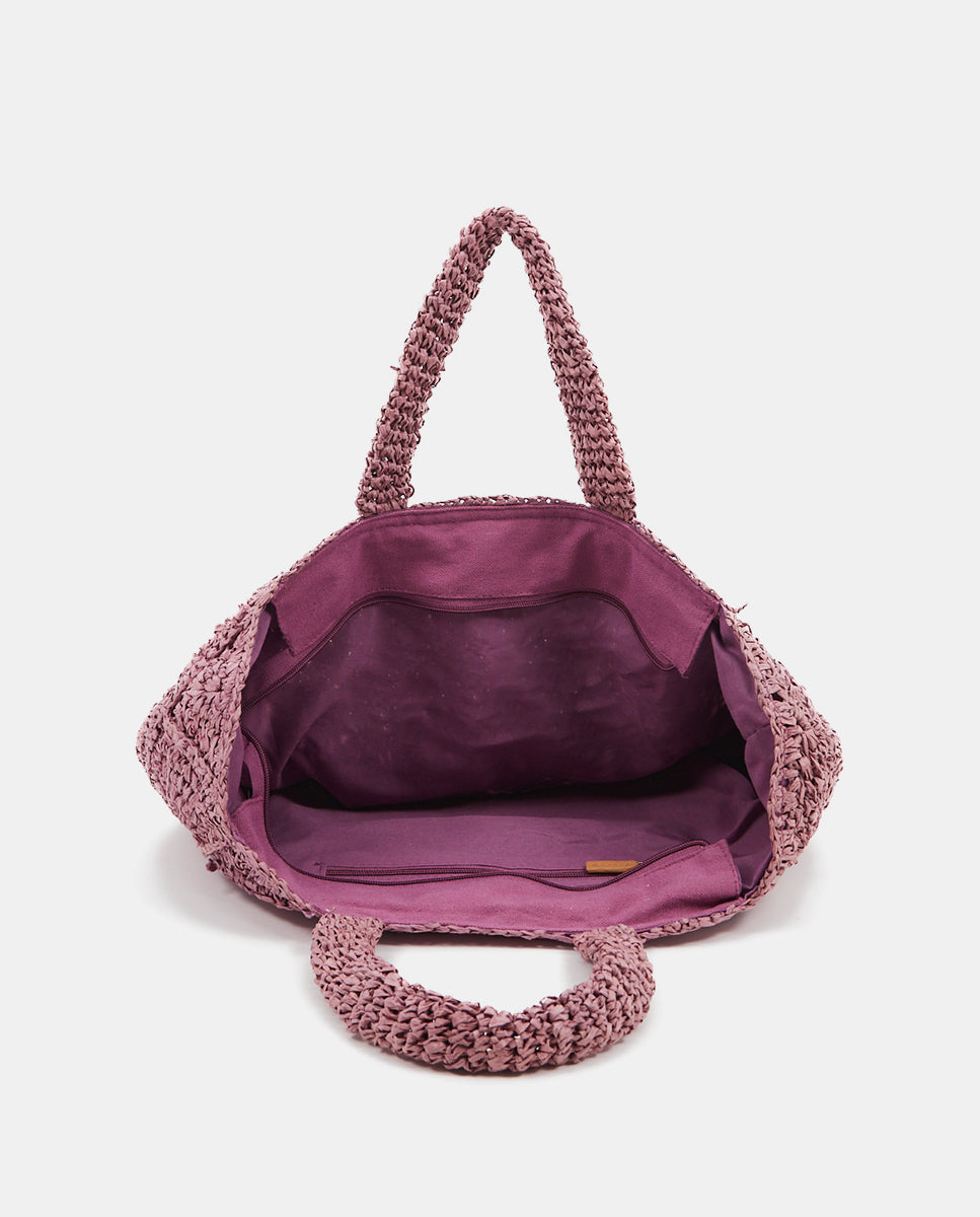 Women's handmade braided beach basket. A spacious model ideal for storing all your essentials. A very versatile design that can accompany you to the beach or on a sunset stroll. Its braiding forms a beautiful and very original geometric effect.
