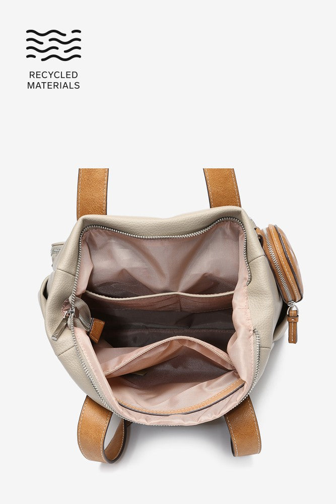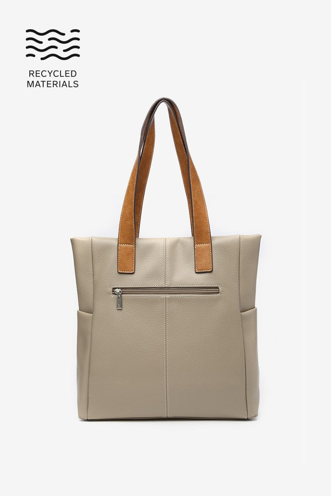 Shopper bag made from recycled and sustainable materials. A very functional design thanks to the various interior and exterior compartments it has, which will allow you to organise and always have your day-to-day essentials to hand.