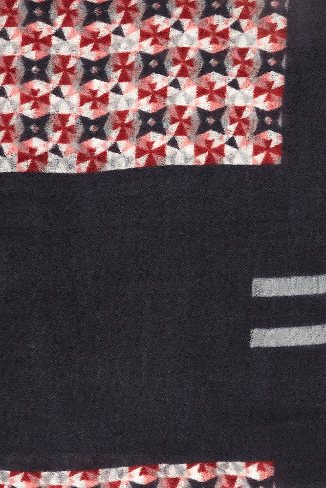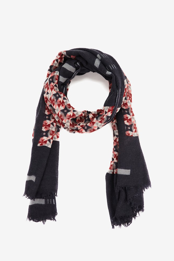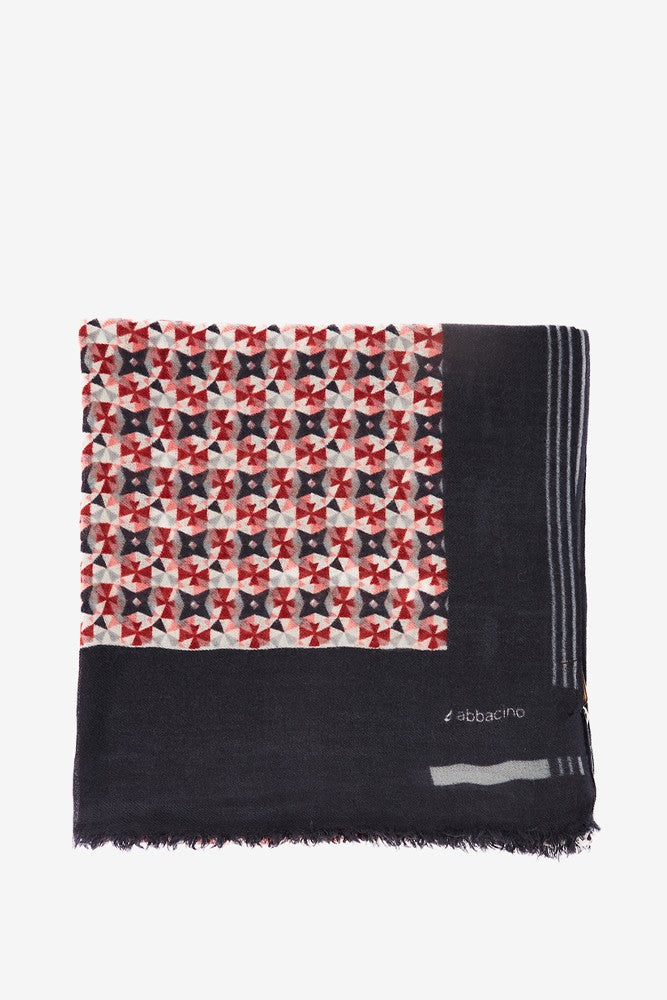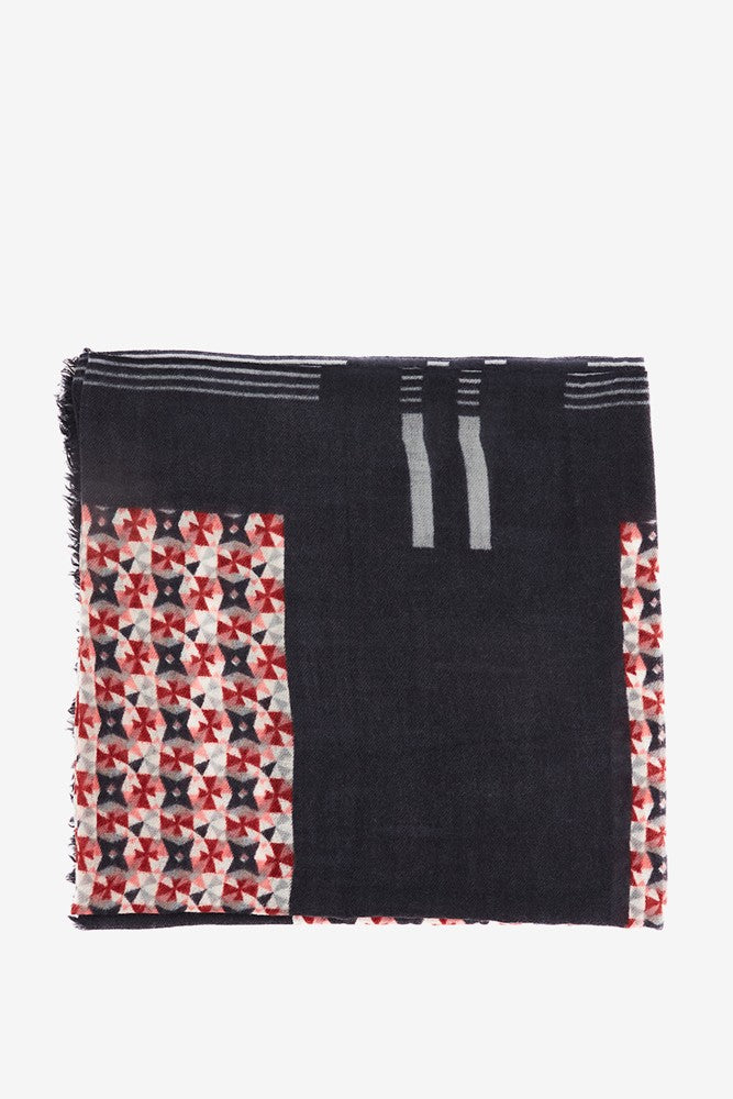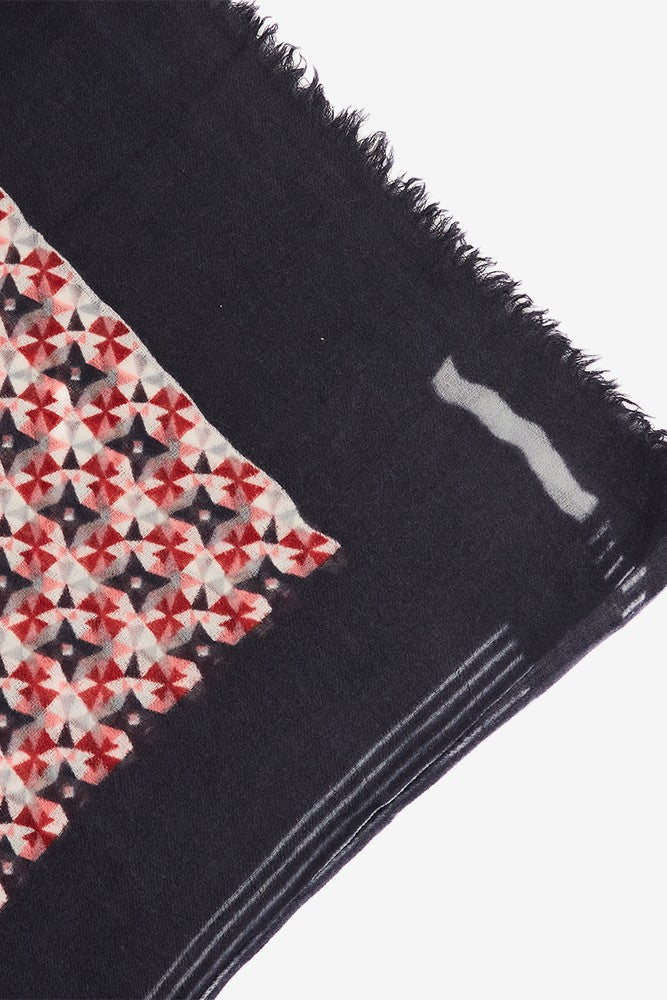 Women's scarf made from 100% wool with a beautiful geometric print that reminds us of the figures formed by a kaleidoscope. Its soft feel and fabric make it the perfect accessory for winter days. Its frayed edges give it a more casual and carefree feel.