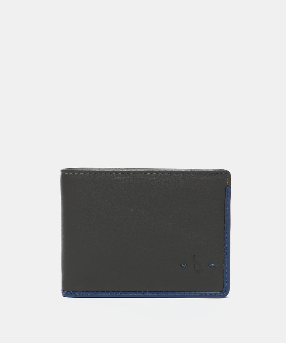 Cartera pequeña de hombre de piel con protección RFID en gris