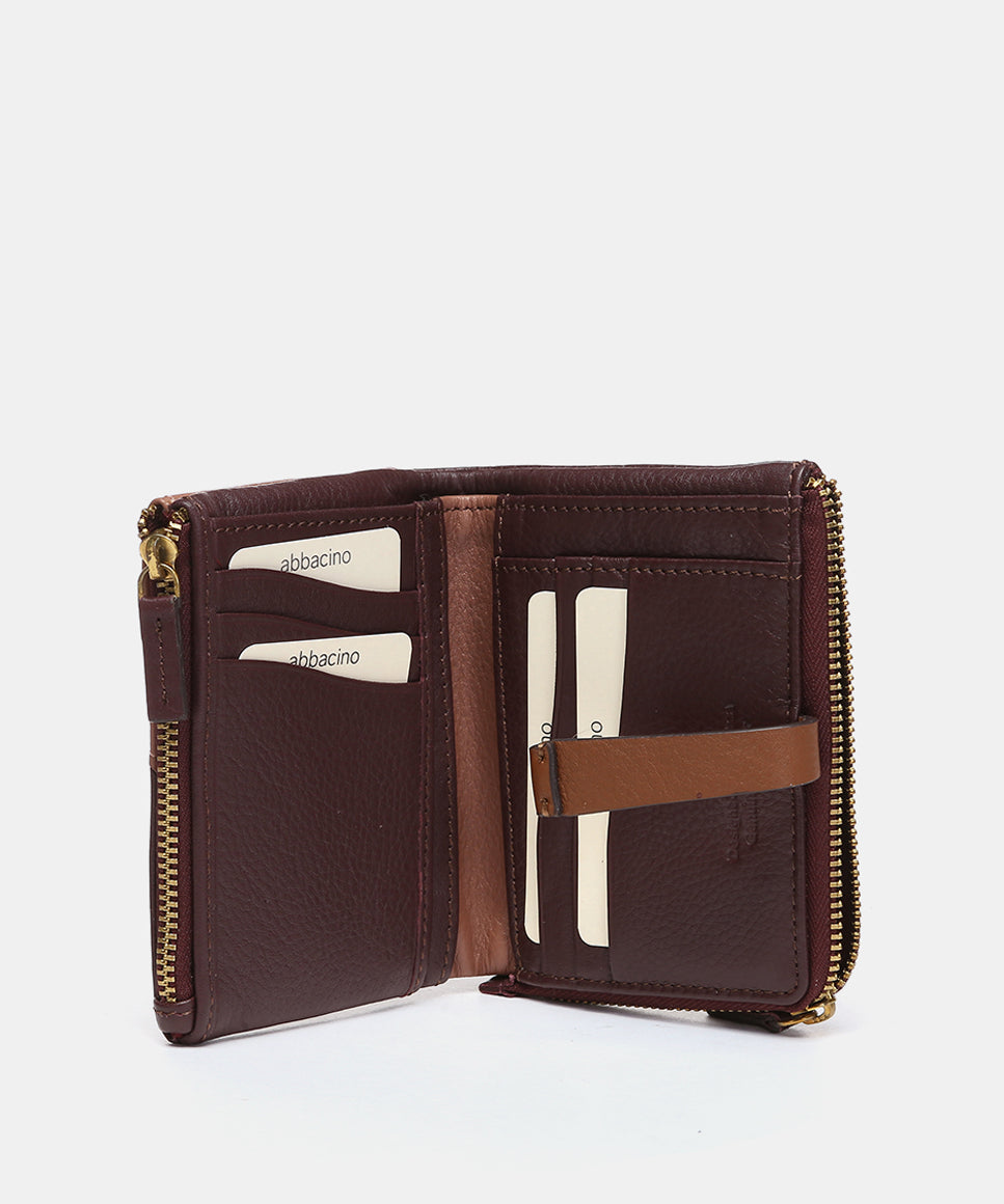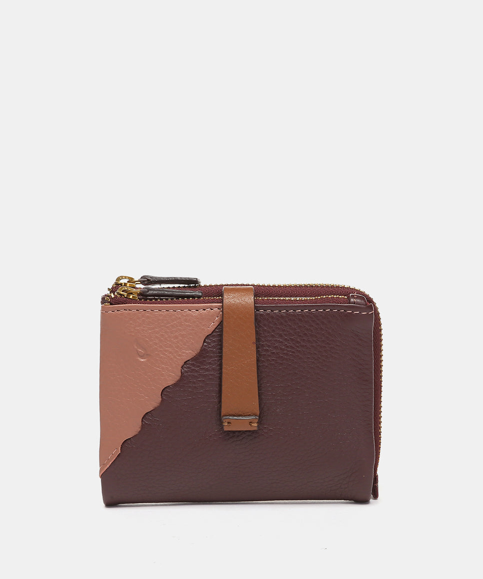 Cartera pequeña en piel bicolor burdeos