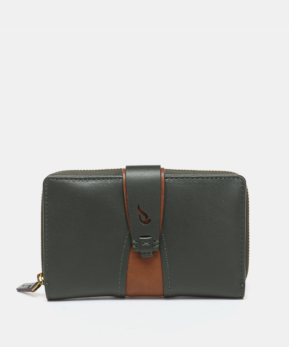 Cartera mediana en piel verde