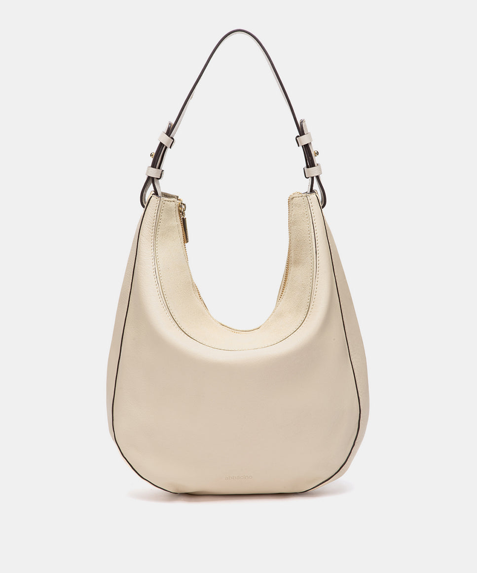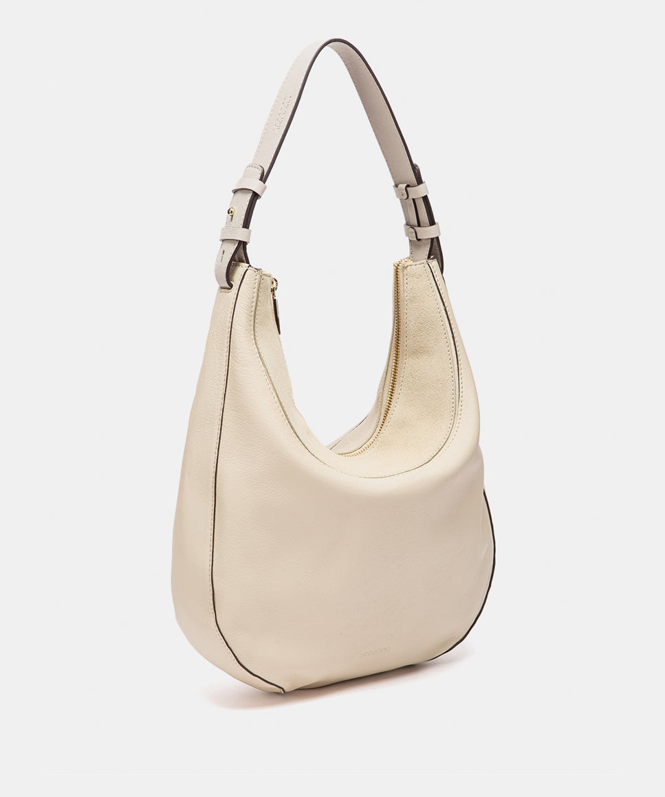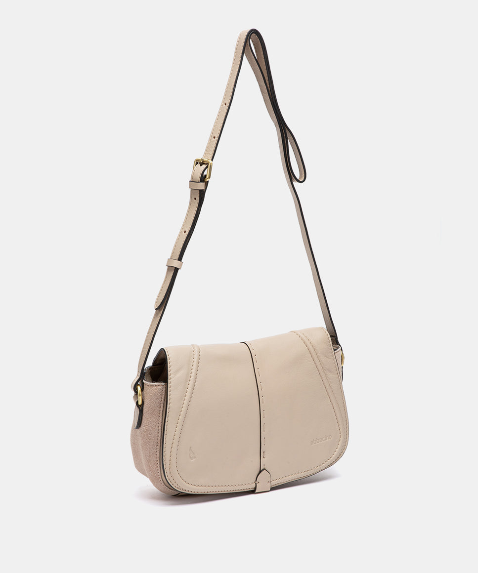 Bolso de hombro en piel y serraje beige