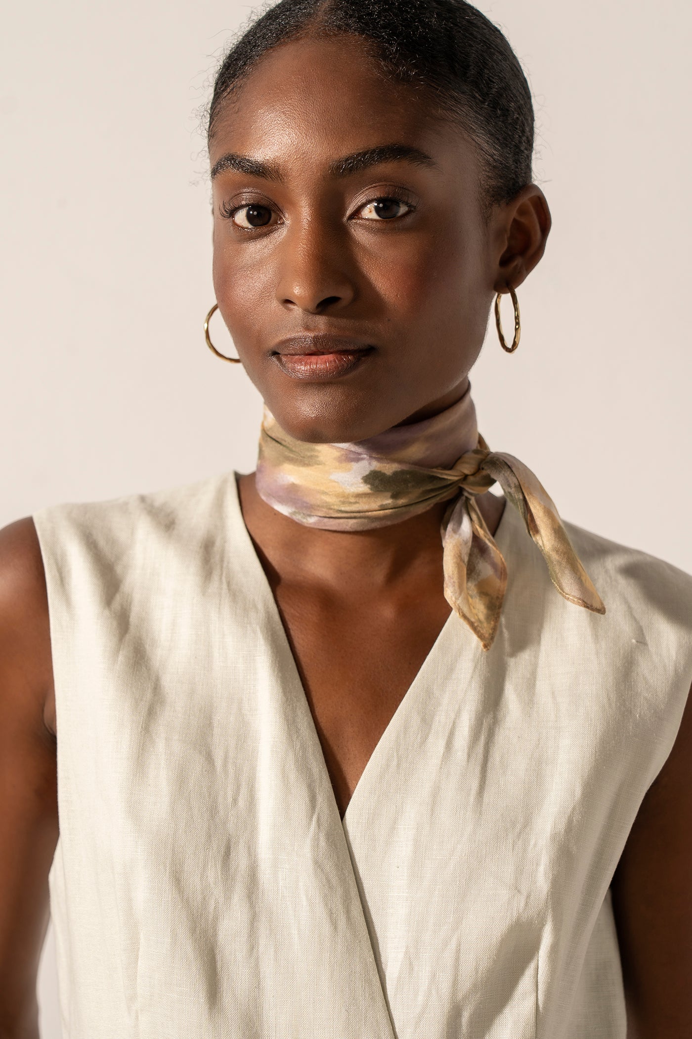 Bandana de modal y seda con estampado abstracto ámbar