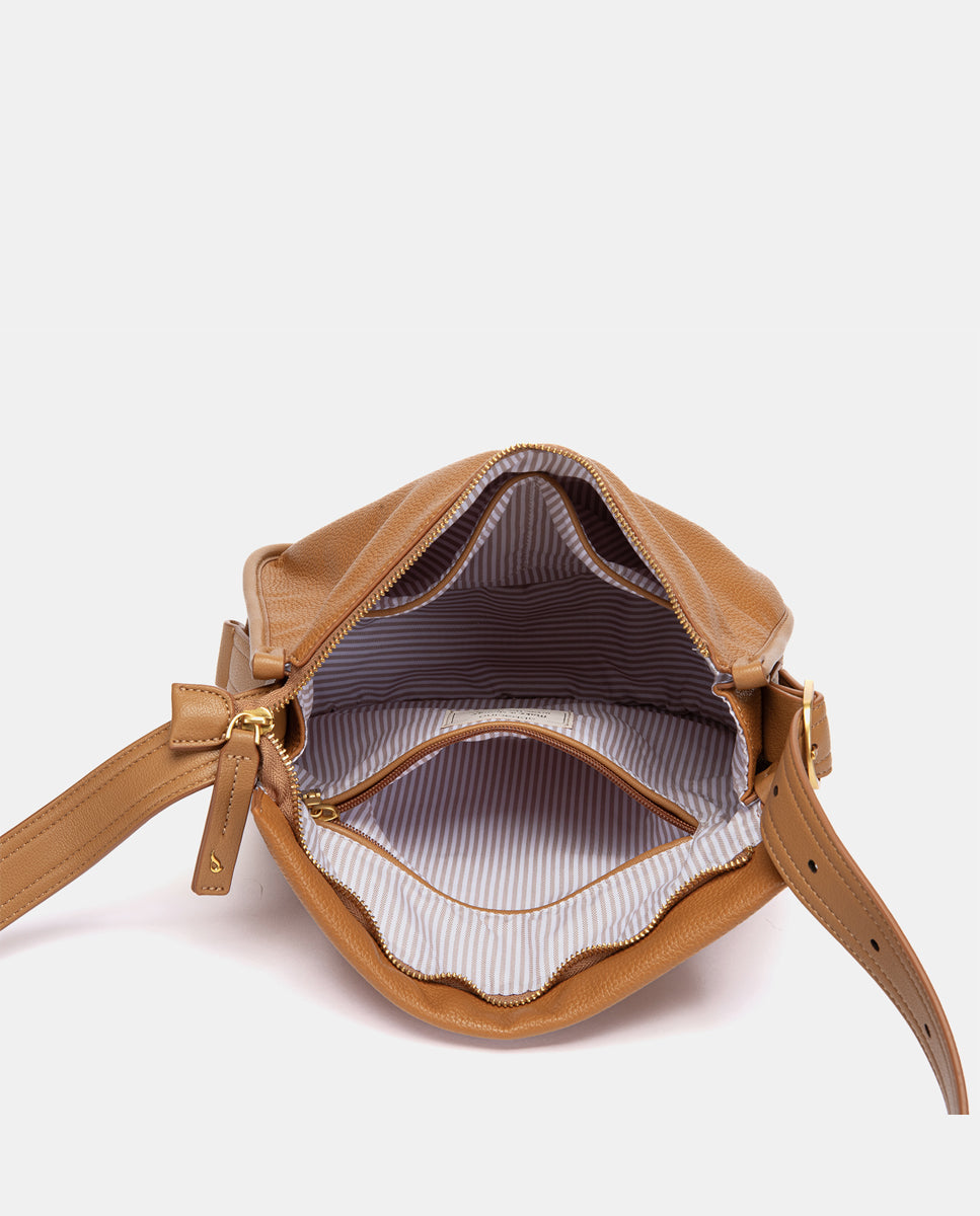 Bandolera de mujer básica y atemporal, elaborada en materiales reciclados, ideal para el uso diario por su practicidad y diseño funcional. Sus principales características son: