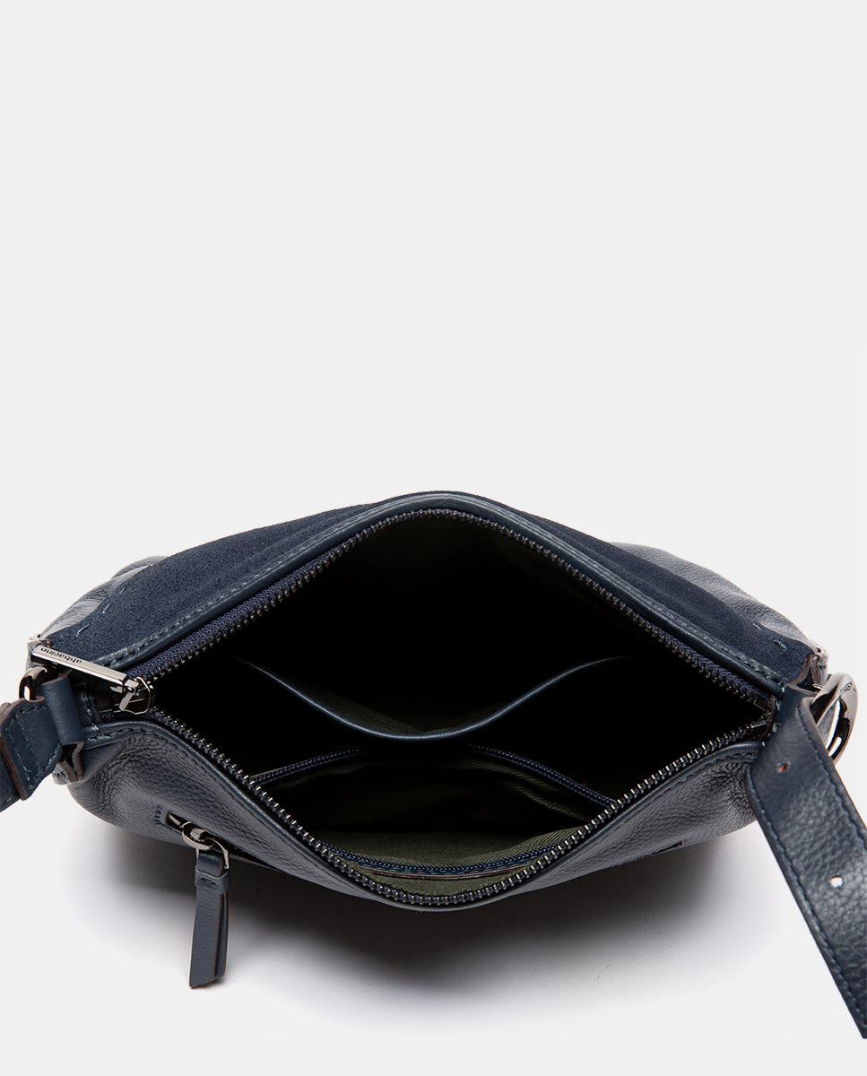 Bandolera de mujer que mezcla piel y ante, logrando un sofisticado contraste de texturas, ideal para el uso diario. Sus principales características son: