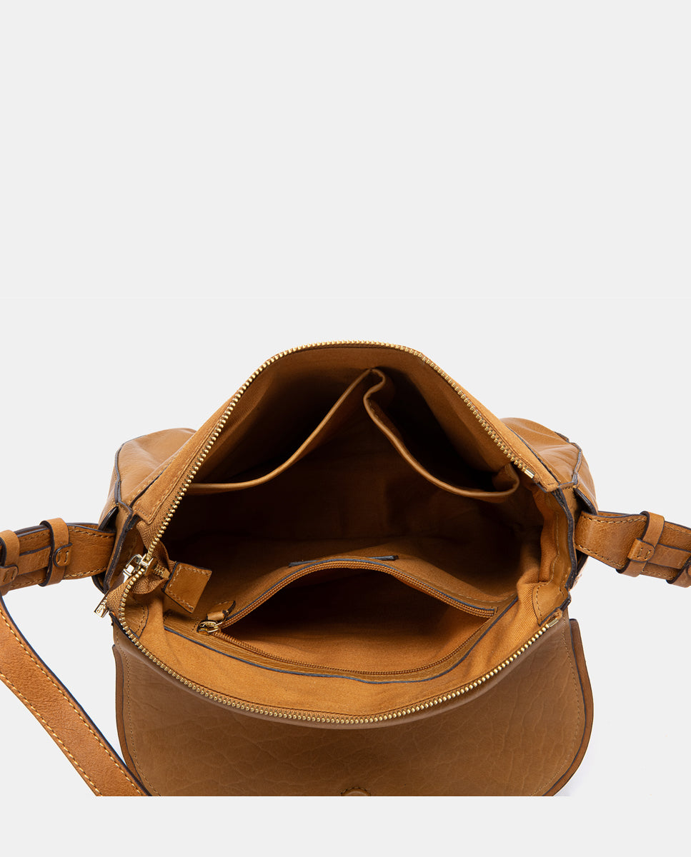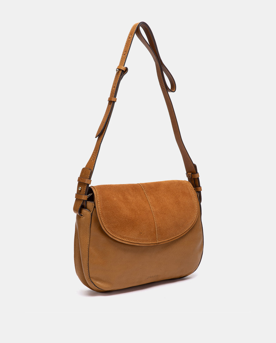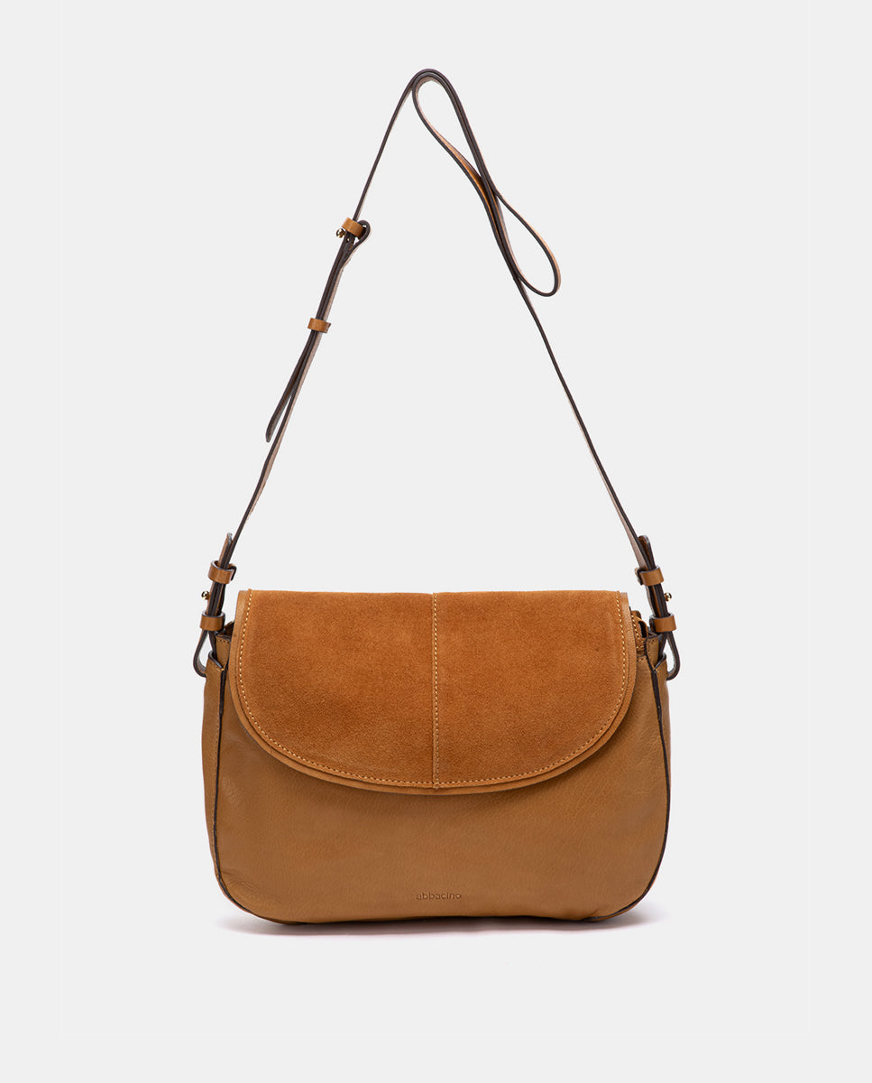 Bandolera en piel y serraje que combina elegancia y funcionalidad. Sus principales características son: