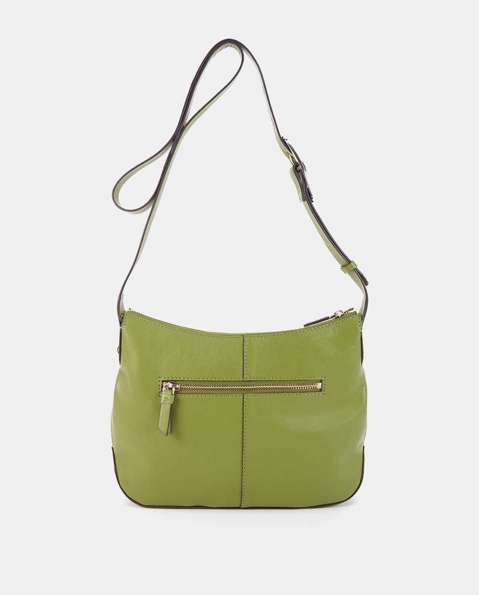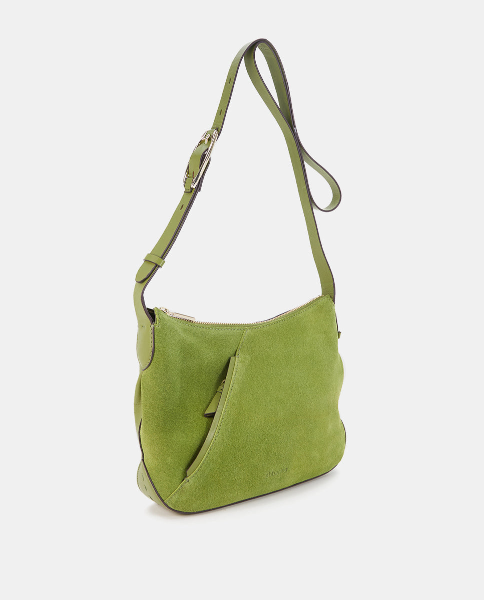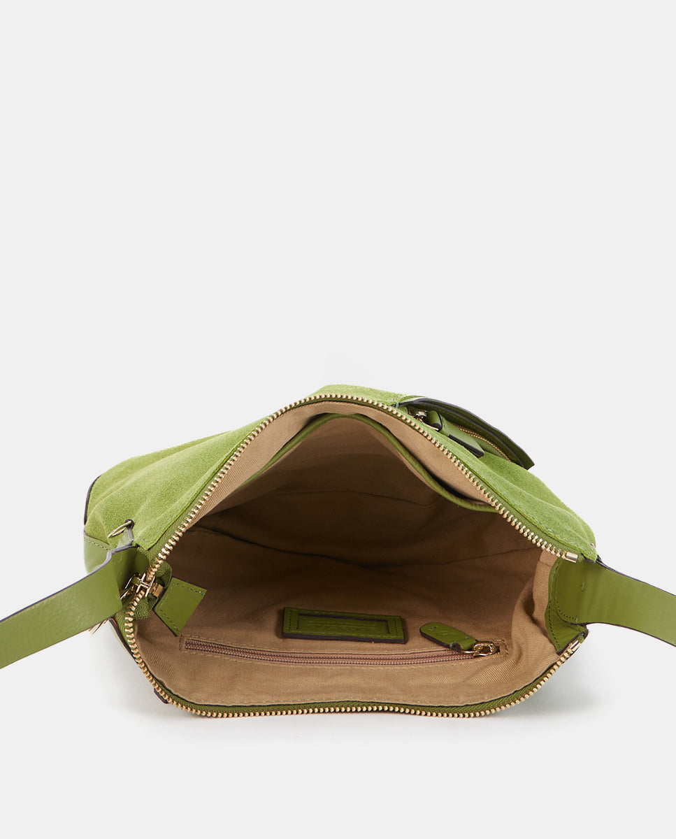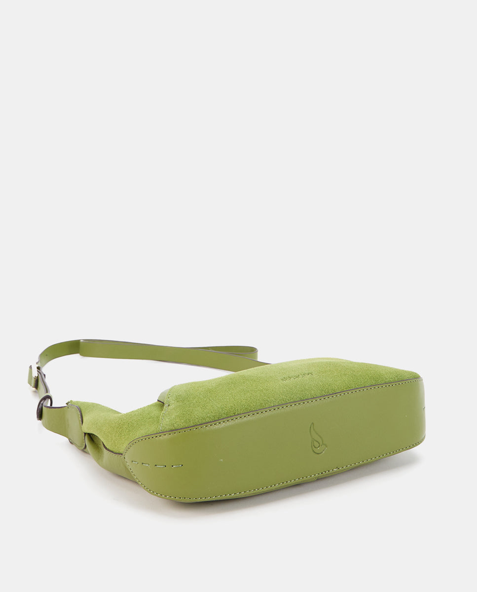Bandolera en piel y serraje verde