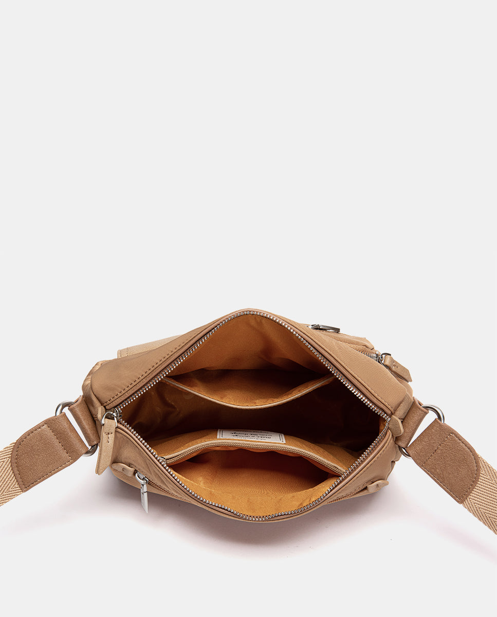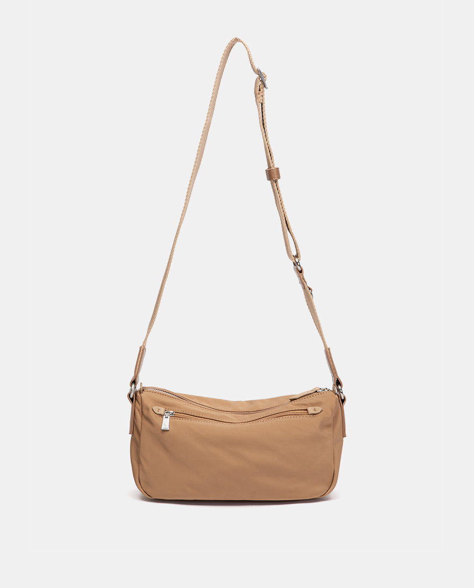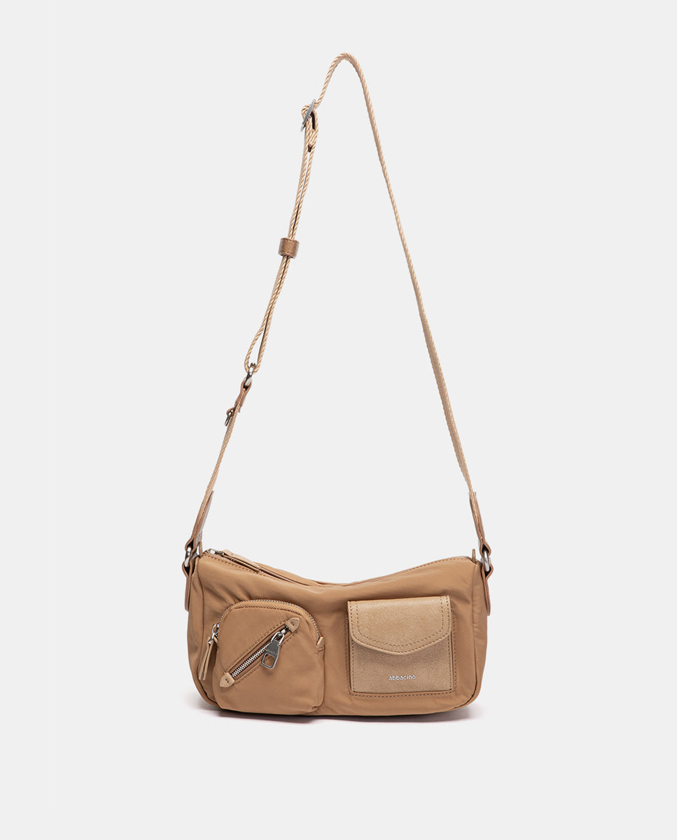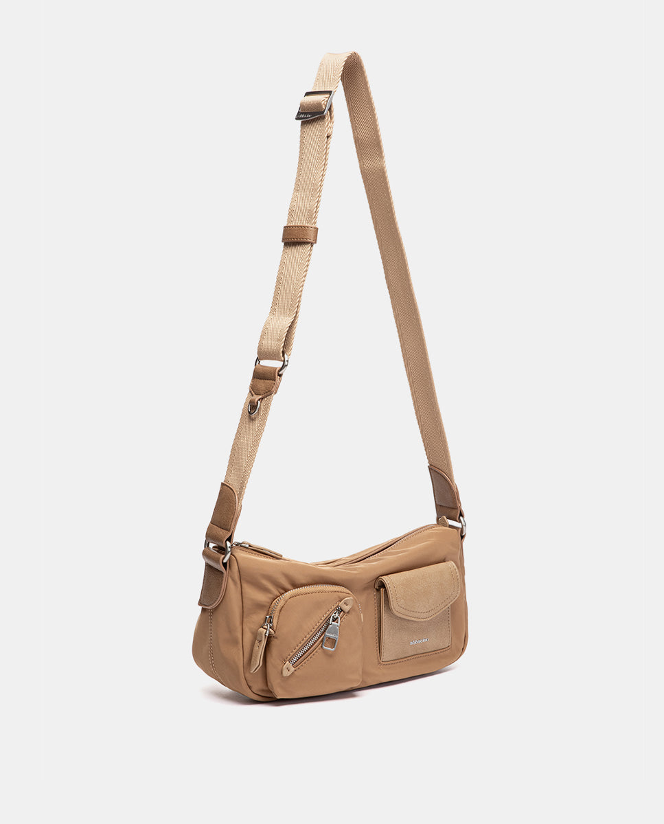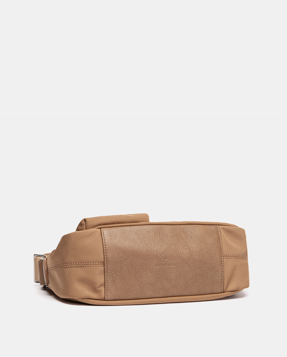 Bandolera elaborada con tejidos reciclados, que combinan dos texturas diferentes y ofrece gran funcionalidad. Sus principales características son: