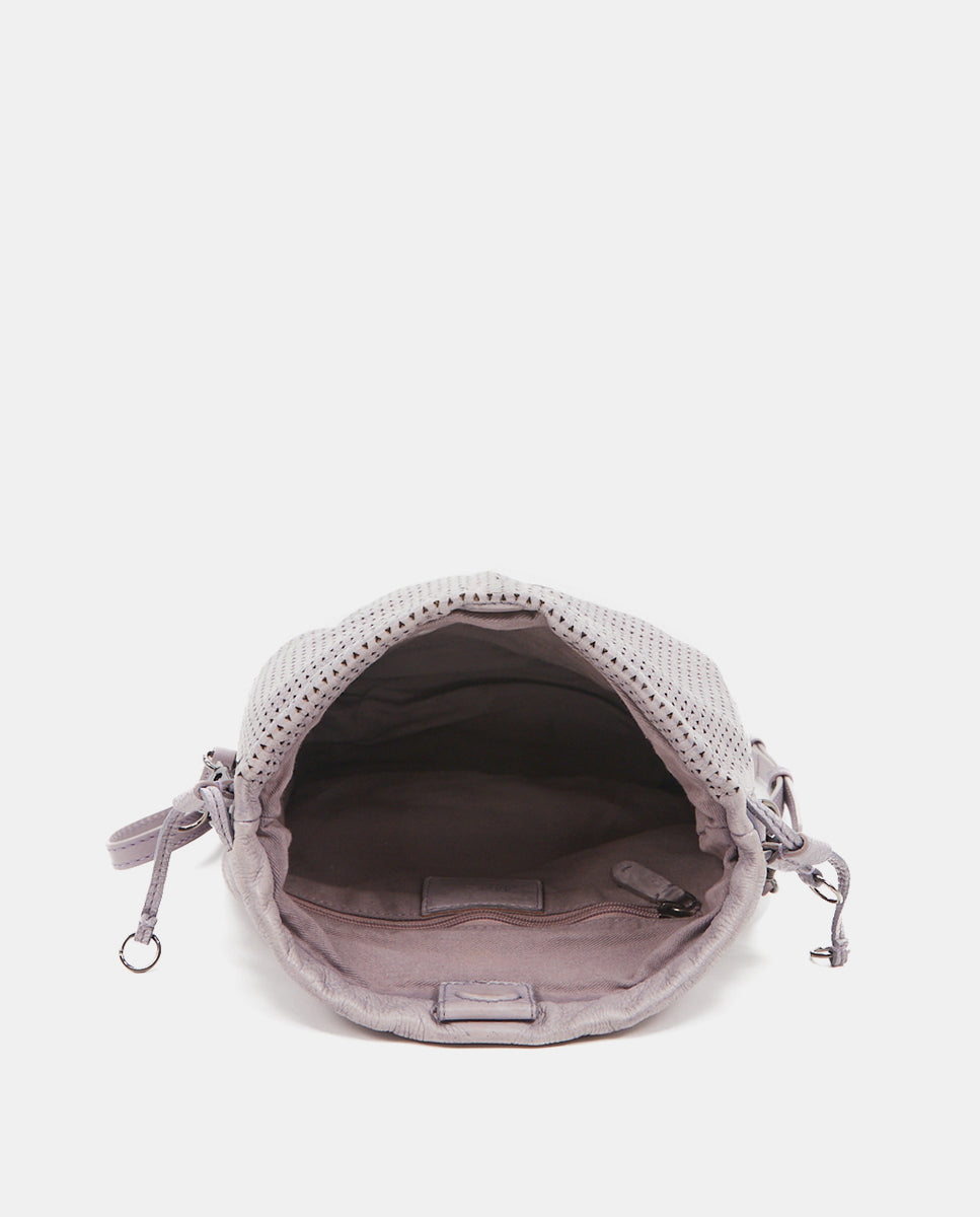 Bandolera tipo saco de mujer en piel troquelada lavanda