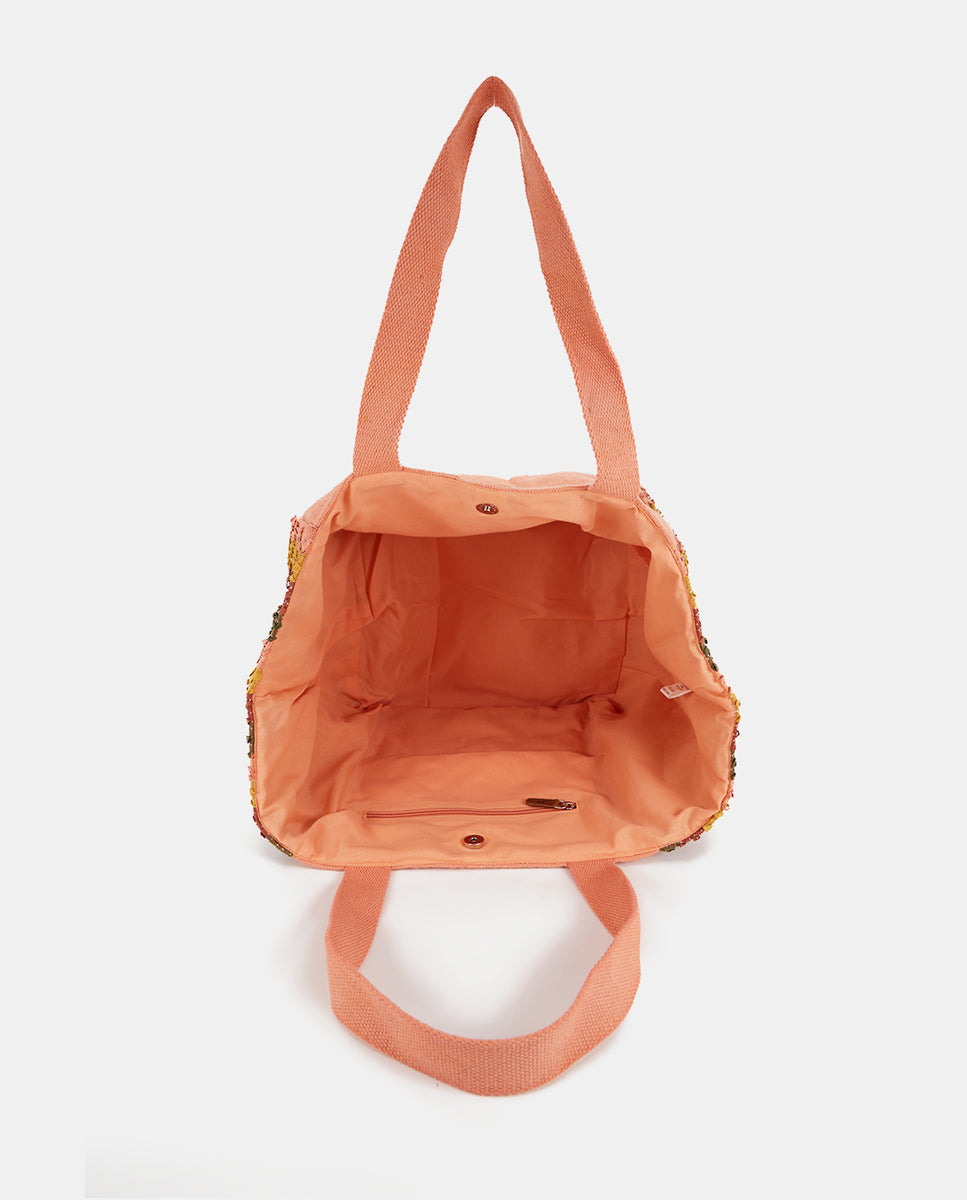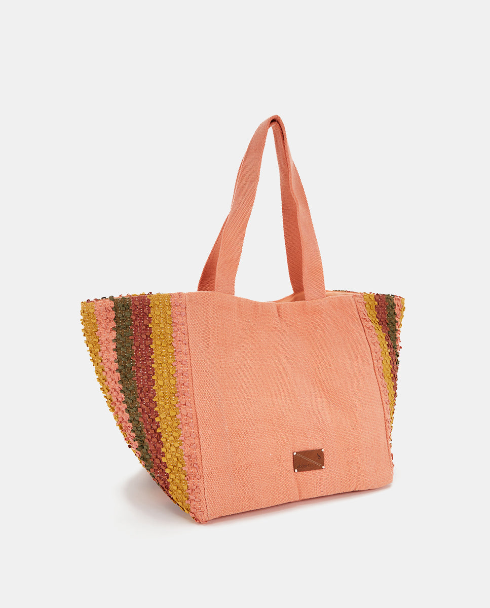 Bolsa playera estilo capazo elaborada con tejido y detalles bordados multicolor en sus laterales. Un modelo holgado y ligero, ideal para tus escapadas a la playa. Combina diferentes tonalidades de color totalmente en tendencia esta nueva temporada. Sus principales características son: