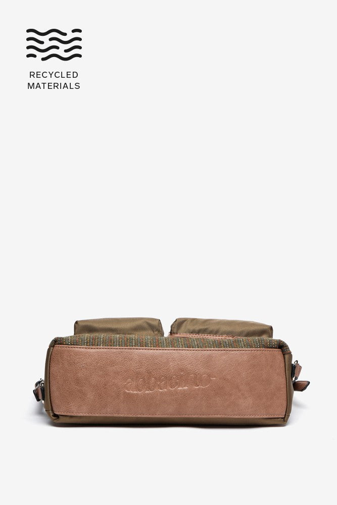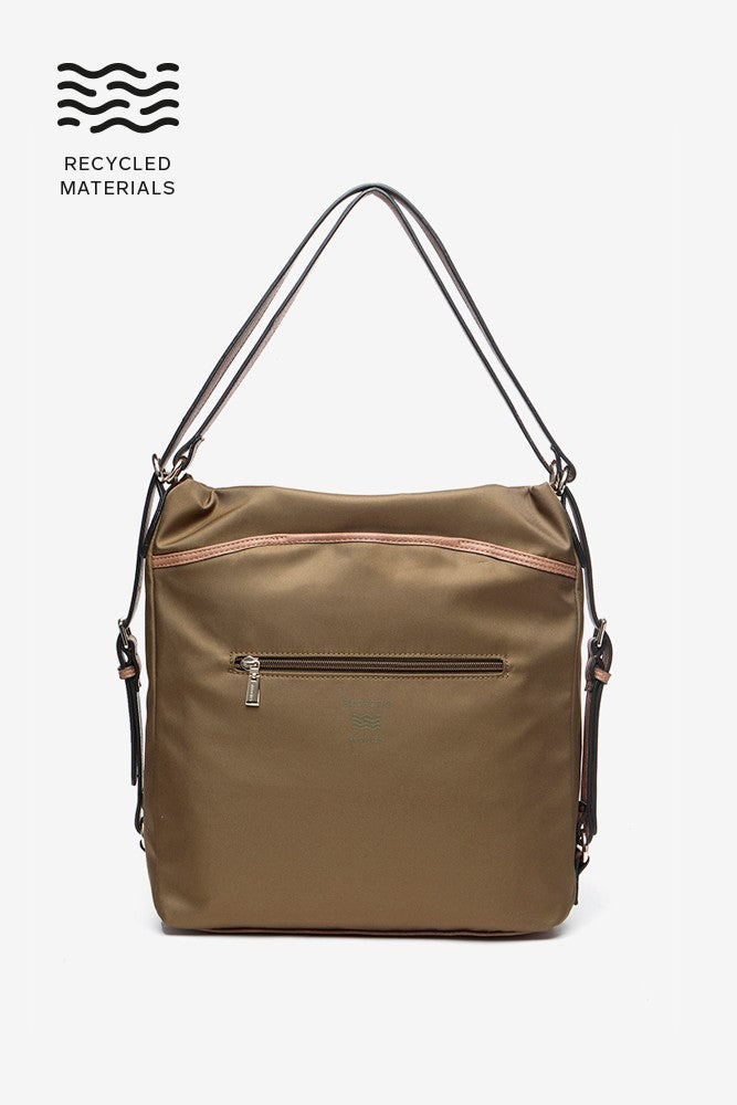 Bolso convertible en mochila para el portátil multi bolsillos elaborado en materiales reciclados, que combina dos diferentes texturas de tejido. Un diseño muy funcional gracias a los diversos compartimentos interiores y exteriores de los que dispone, que te permitirán organizar y tener siempre a mano tus objetos esenciales para el día a día.