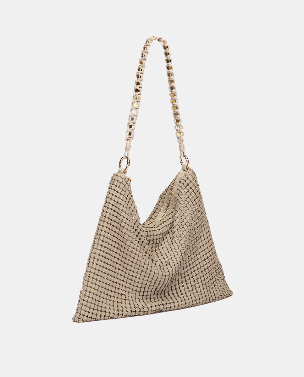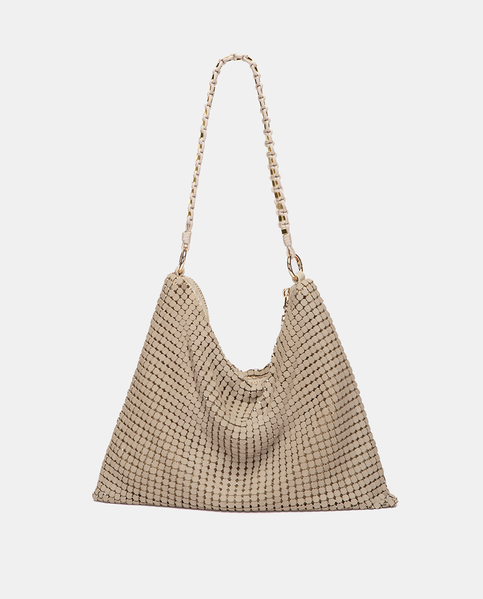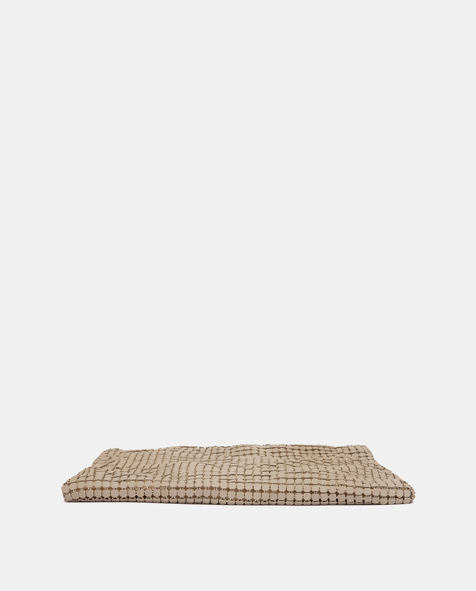 Bolso de fiesta en malla metálica beige