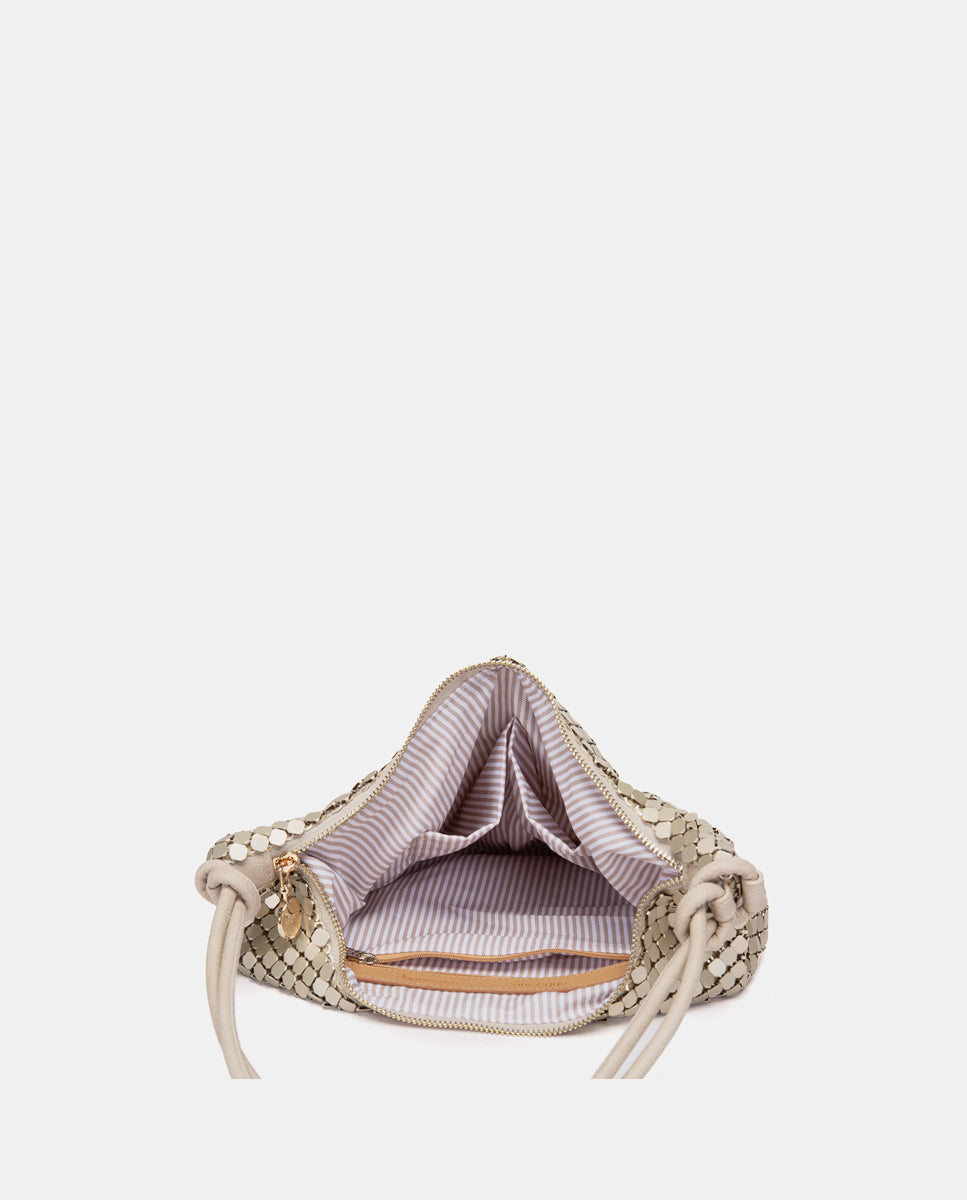 Bolso de fiesta en malla metálica dorada