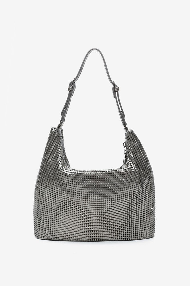 Bolso de fiesta hobo de mujer de malla metálica en plata
