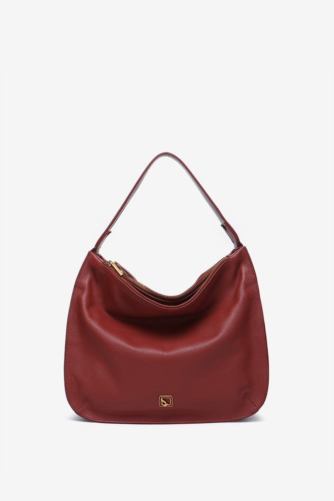 Bolso de hombro estilo hobo elaborado en piel Premium. Un diseño de corte clásico y minimalista con pequeños detalles en dorado, como sus cremalleras y mosquetones. Un auténtico fondo de armario atemporal, elegante y práctico. Sus principales características son: