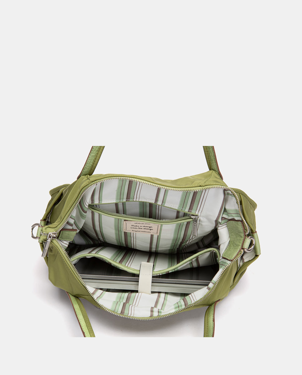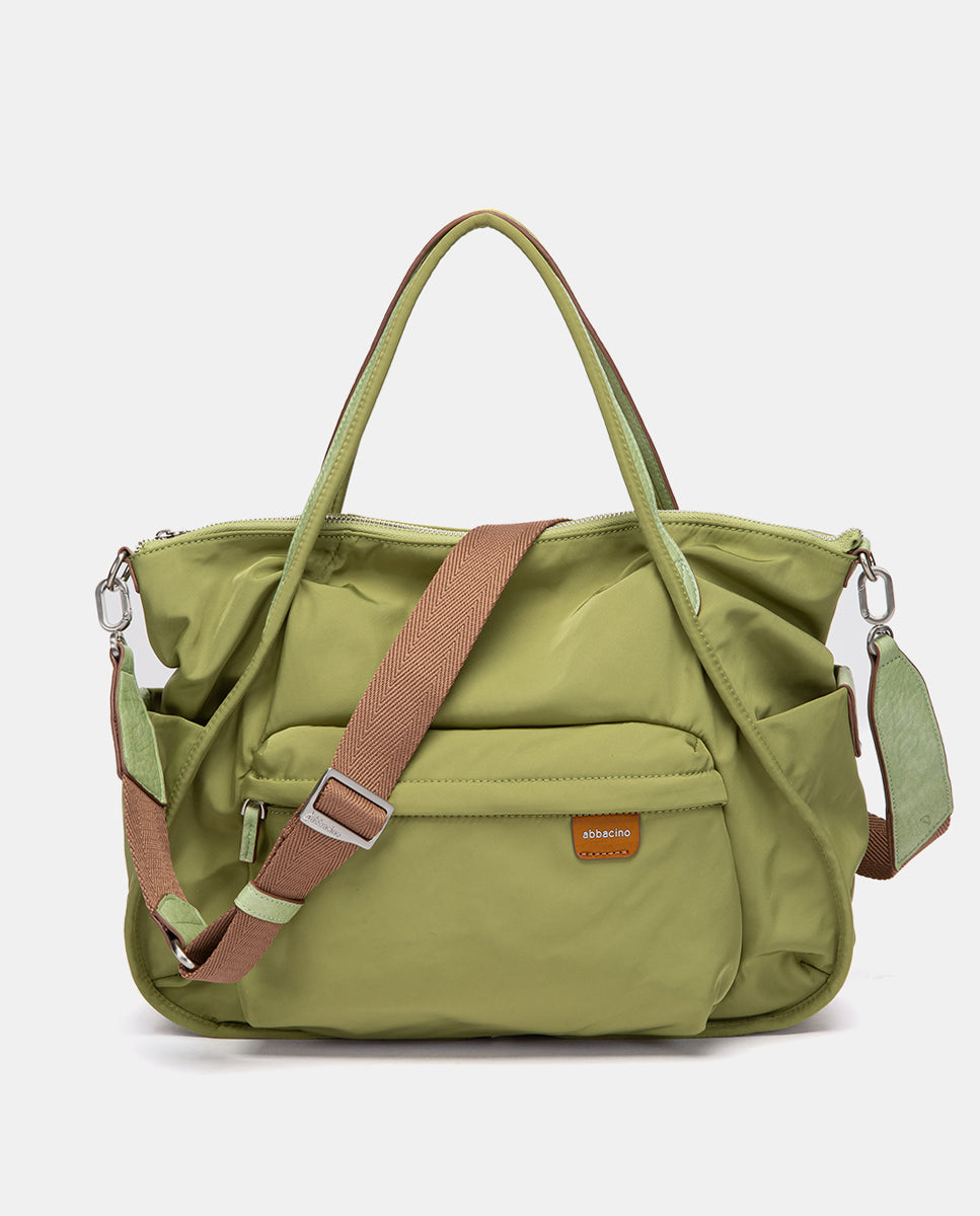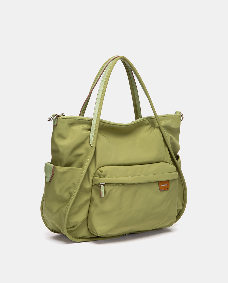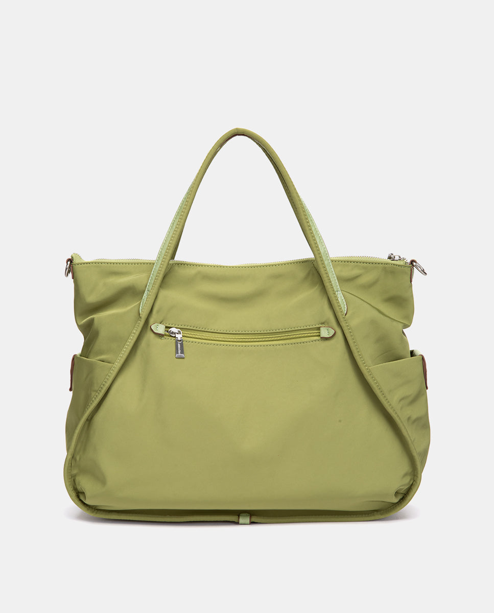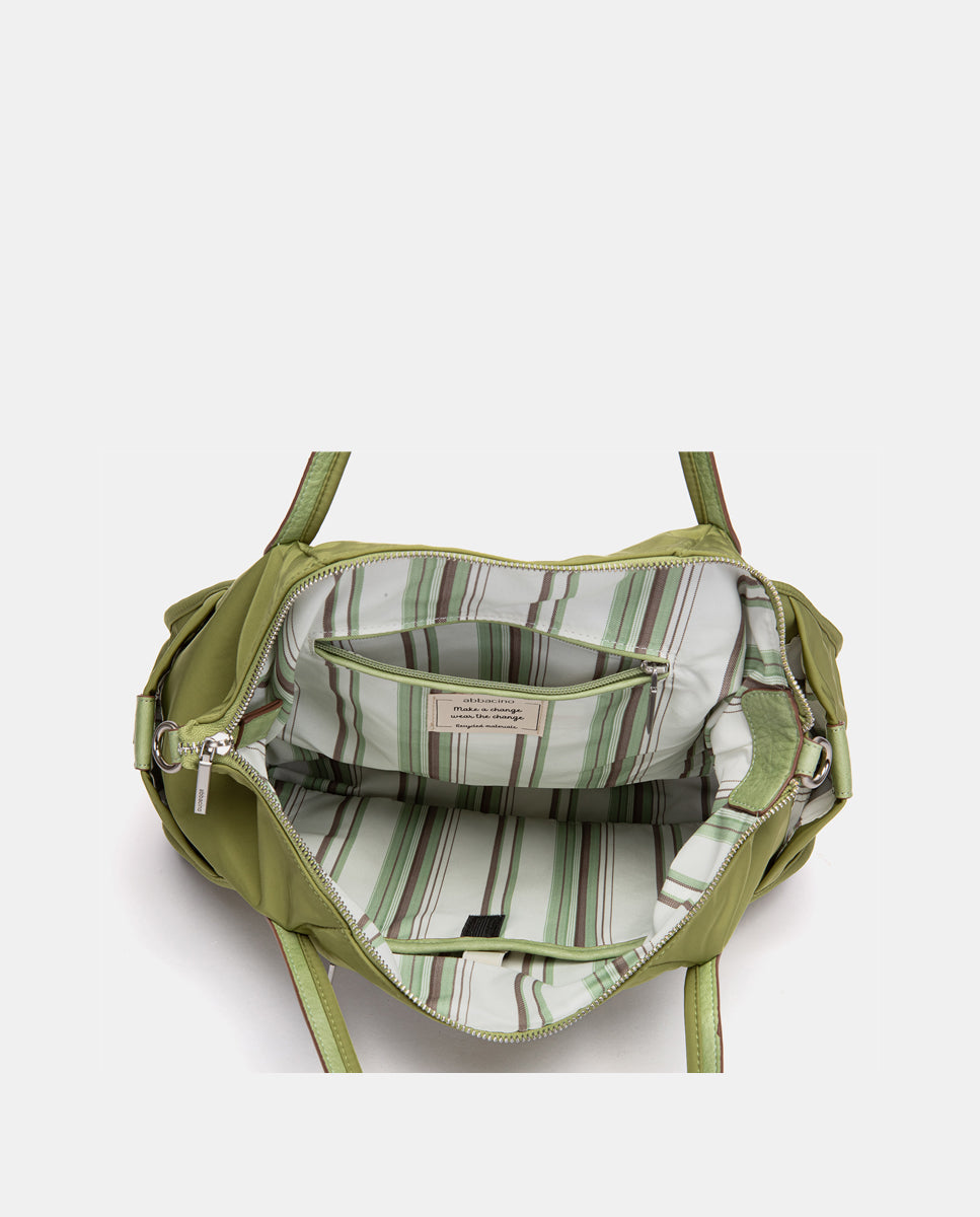 Bolso de hombro confeccionado en tejidos reciclados, ligero y fluido, con tacto suave y gran capacidad, ideal para el uso diario. Sus principales características son: