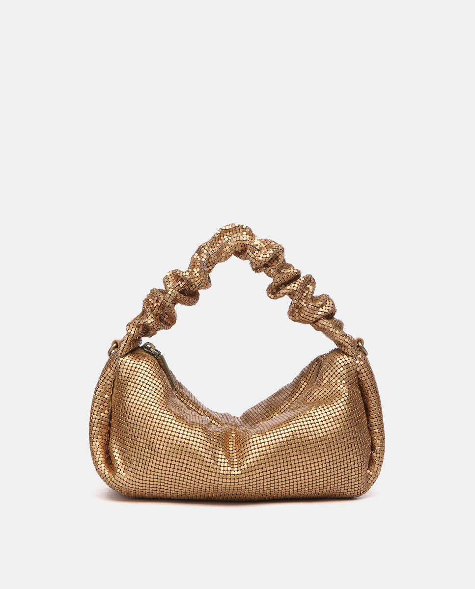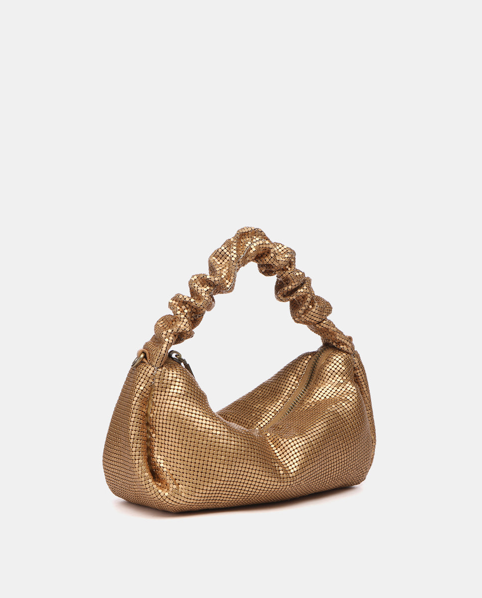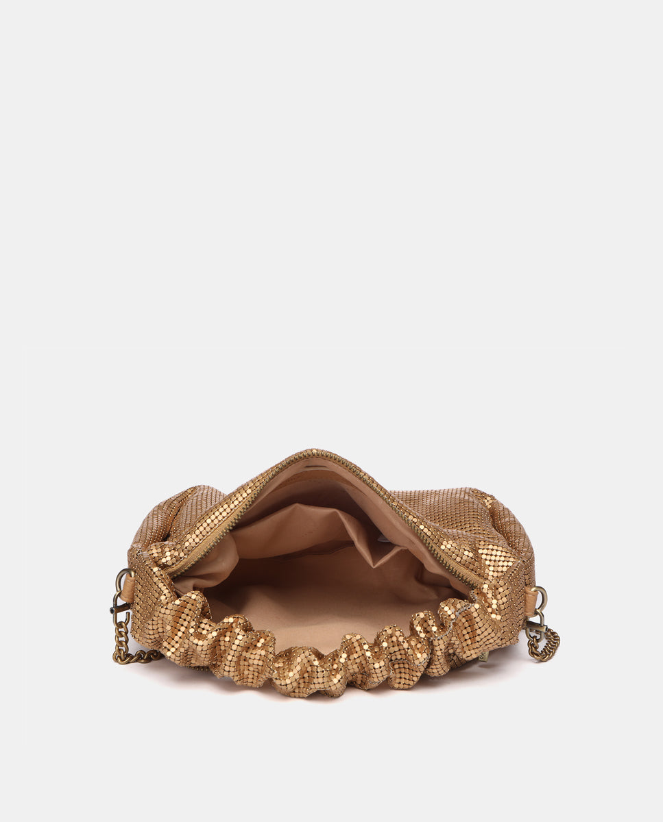 Bolso de mano de fiesta de mujer en forma de media luna elaborado en malla metálica. Un diseño que se viste en los colores de temporada con el que brillarás allá donde vayas, perfecto para la noche y el día, es la opción ideal para crear looks únicos. Sus principales características son: